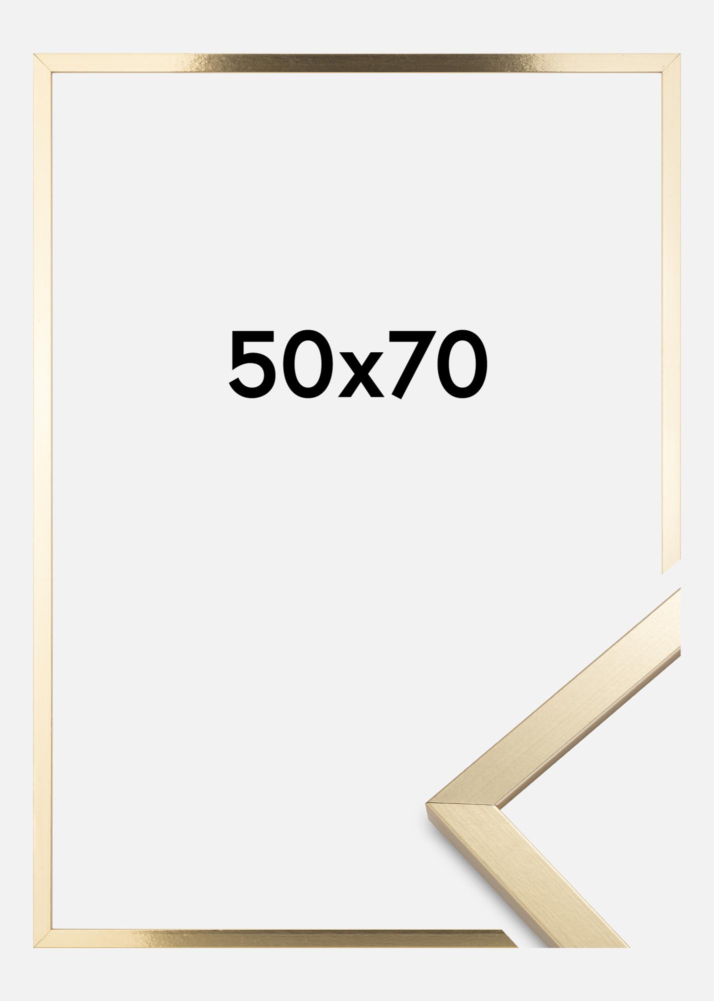 Med måtten 50 x 70 cm passar denna guldram perfekt för både stora och små konstverk. Den är utrustad med praktiska metallhängare på baksidan, vilket gör den enkel att montera på väggen. Dessutom är ramen designad med böjbara stift för att enkelt kunna byta ut innehållet. Oavsett om du letar efter en fotoram eller en tavelram, är denna prisvärda och mångsidiga ram ett utmärkt val som finns tillgänglig i flera storlekar för att passa alla dina behov.