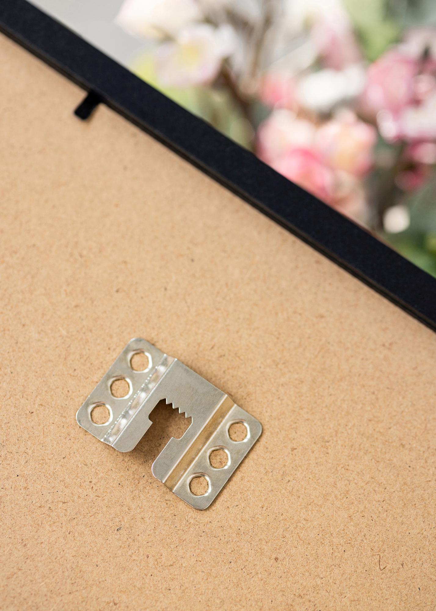 Ramen är utrustad med metallhängare på baksidan, vilket gör det enkelt att hänga den både horisontellt och vertikalt. Detta ger dig flexibilitet att anpassa presentationen efter ditt utrymme och dina preferenser. Tavelramens djup är 15 mm, vilket bidrar till dess eleganta och sofistikerade utseende.