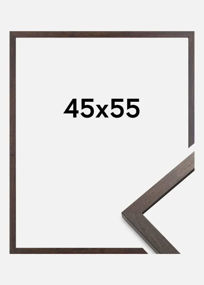 Denna valnötsfärgade fotoram är en perfekt kombination av stil och funktionalitet. Med en storlek på 45x55 cm är den idealisk för att framhäva dina favoritfotografier, konstverk eller posters. Den mörkbruna, matta finishen ger en varm och naturlig känsla som smälter in i både klassiska och moderna interiörer. Den minimalistiska designen med en smal ramlist på 15 mm skapar en diskret inramning som låter motivet stå i centrum.