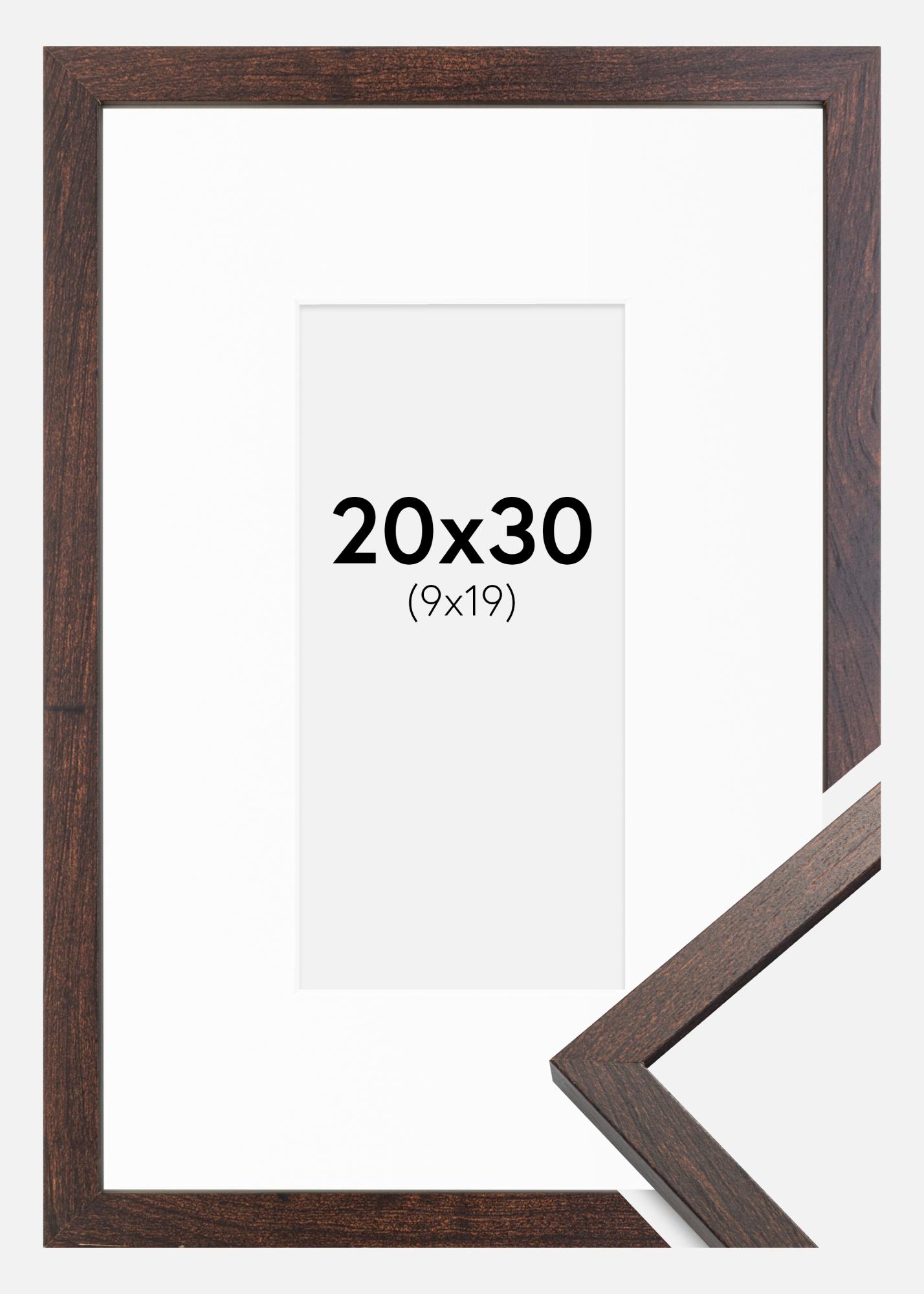 Ram Trendy Valnöt 20x30 cm - Passepartout Vit 10x20 cm