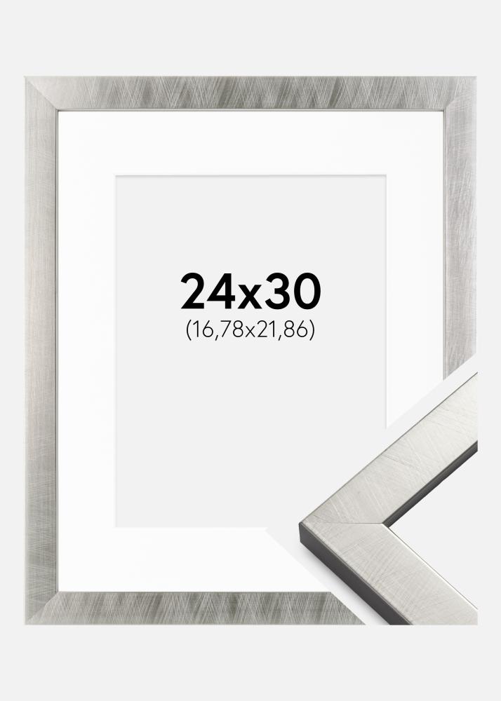 Ram Uppsala Silver 24x30 cm - Passepartout Vit 7x9 inches