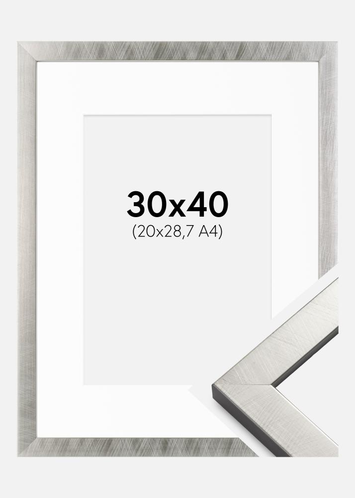 Ram Uppsala Silver 30x40 cm - Passepartout Vit 21x29,7 cm (A4)
