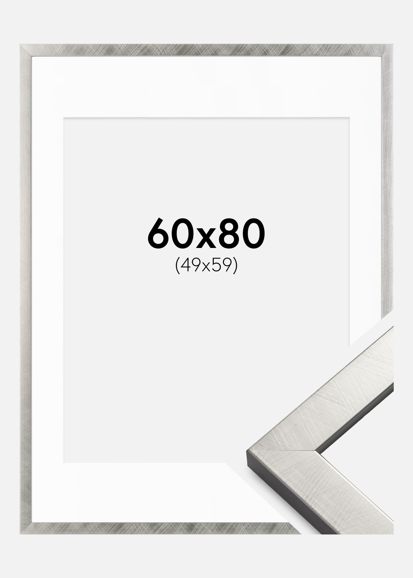 Ram Uppsala Silver 60x80 cm - Passepartout Vit 50x60 cm