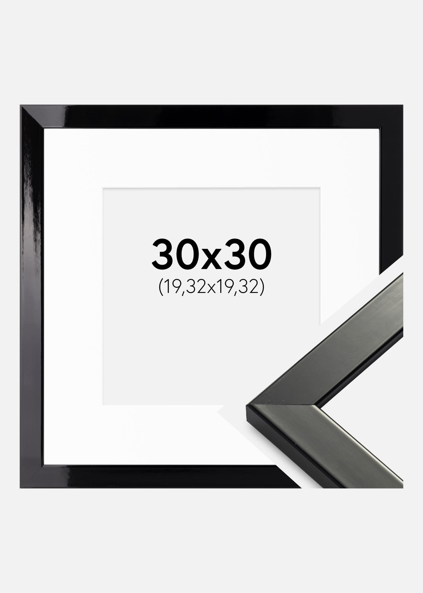 Ram Uppsala Svart Högblank 30x30 cm - Passepartout Vit 8x8 inches