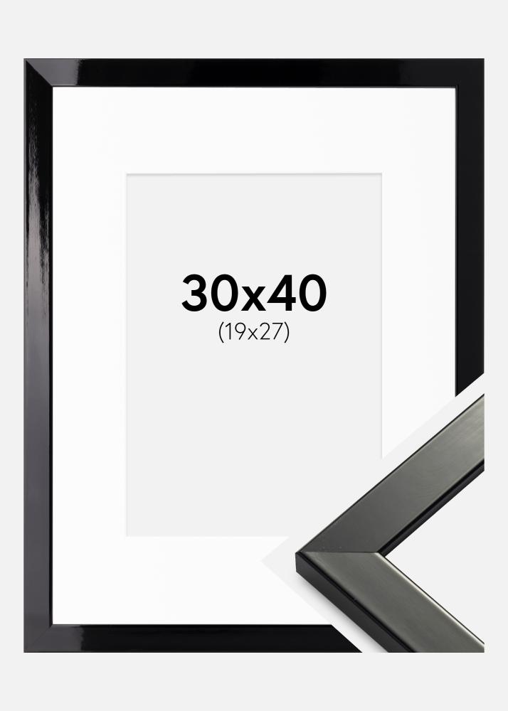Ram Uppsala Svart Högblank 30x40 cm - Passepartout Vit 20x28 cm