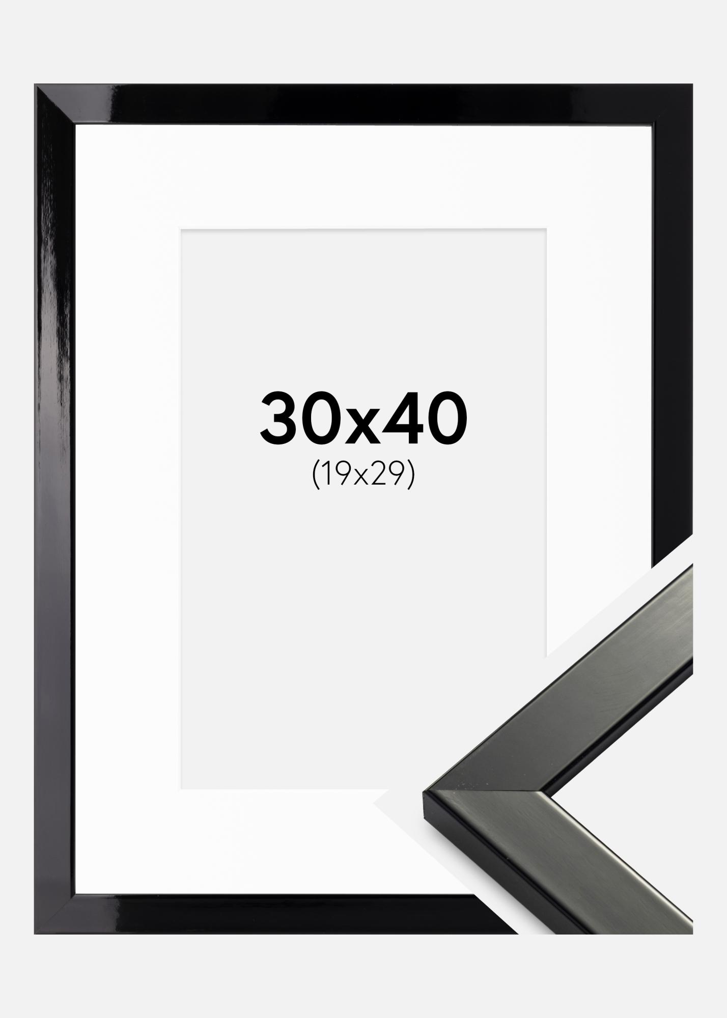 Ram Uppsala Svart Högblank 30x40 cm - Passepartout Vit 20x30 cm