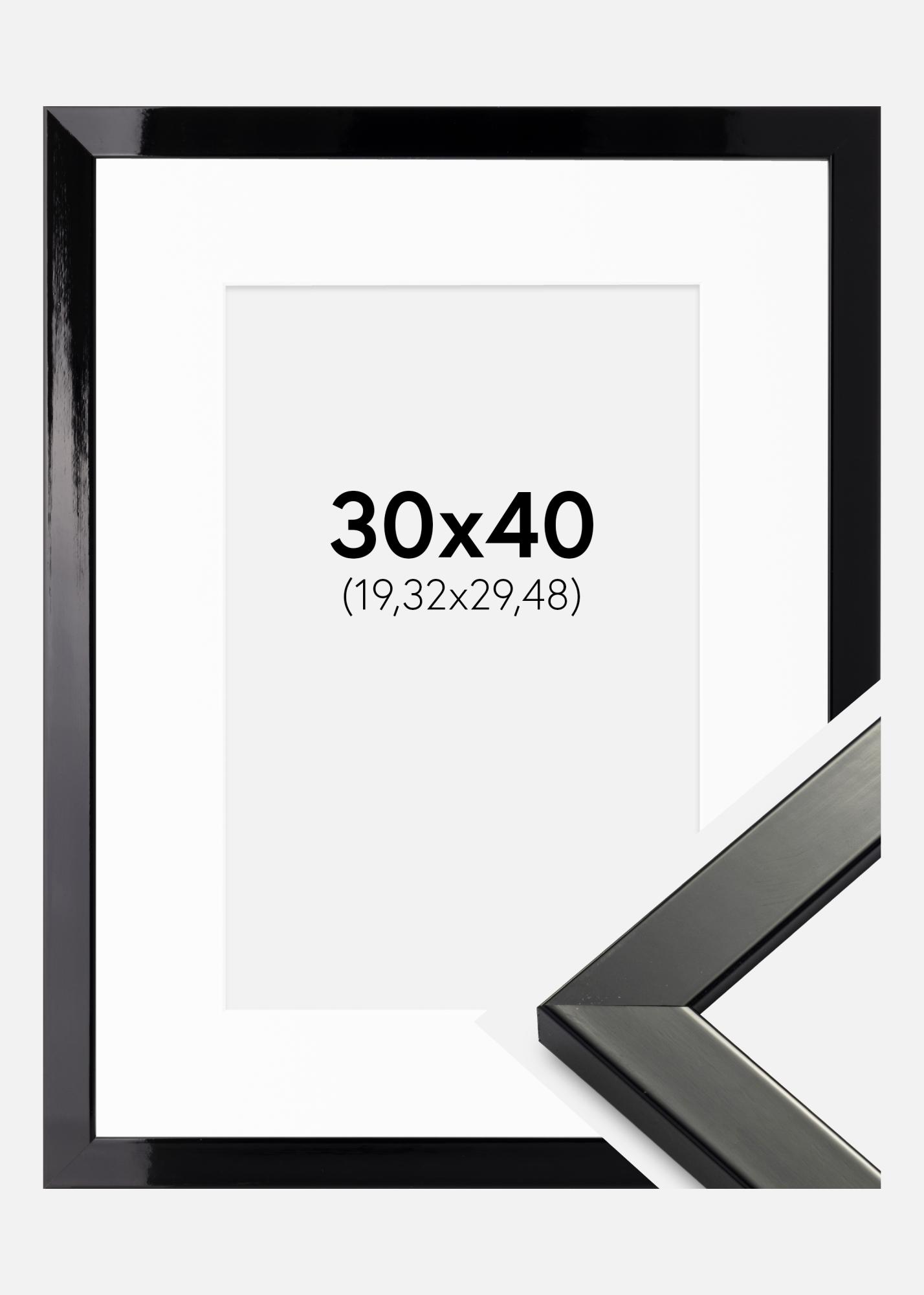 Ram Uppsala Svart Högblank 30x40 cm - Passepartout Vit 8x12 inches
