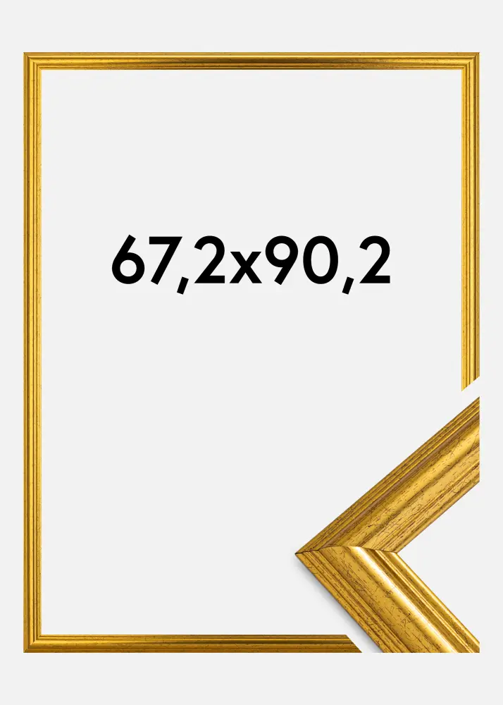 Addera lyx och flärd i ditt hem med denna robusta guldram med dekorativt utformad profil och en bred list på hela 31 mm. Ramen har en blank yta med rödspräckliga inslag, vilket gör att den får ett vackert ”slitet” utseende som sätter en lyxigare prägel på ditt hem. En pampig fotoram som denna ger exklusiv inramning till alla dina foton och posters, och den fungerar även utmärkt som ett originellt inslag i en större tavelvägg.