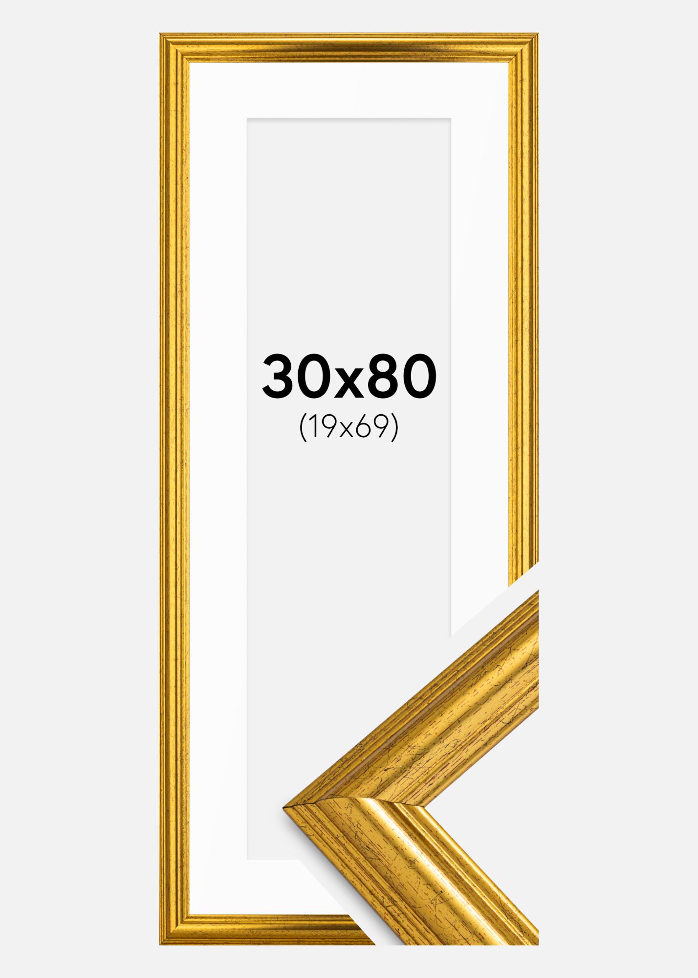 Ram Västkusten Guld 30x80 cm - Passepartout Vit 20x70 cm