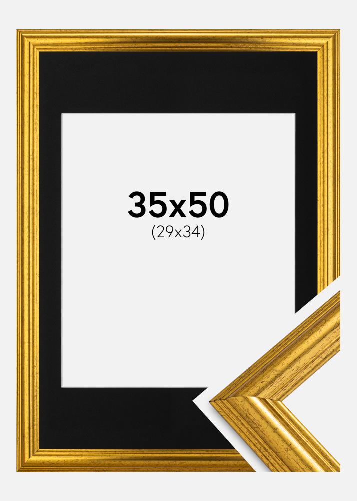 Ram Västkusten Guld 35x50 cm - Passepartout Svart 30x35 cm