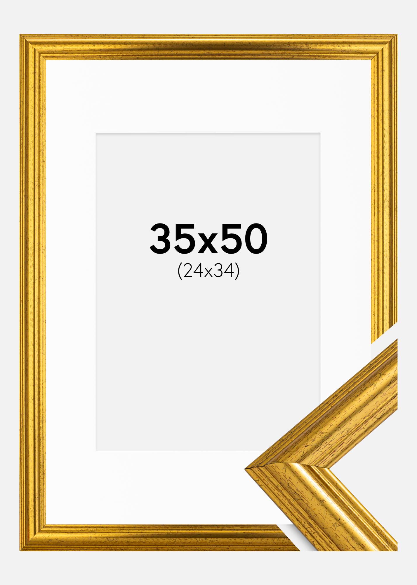 Förvandla ditt favoritfoto eller konstverk till en elegant väggdekoration med vår exklusiva guldram med vit passepartout. Denna sofistikerade ram är perfekt för att framhäva och skydda din bild i storleken 25x35 cm. Med en bredd på 31 mm och ett djup på 17 mm, ger ramen en distinkt och lyxig känsla till ditt utvalda motiv.