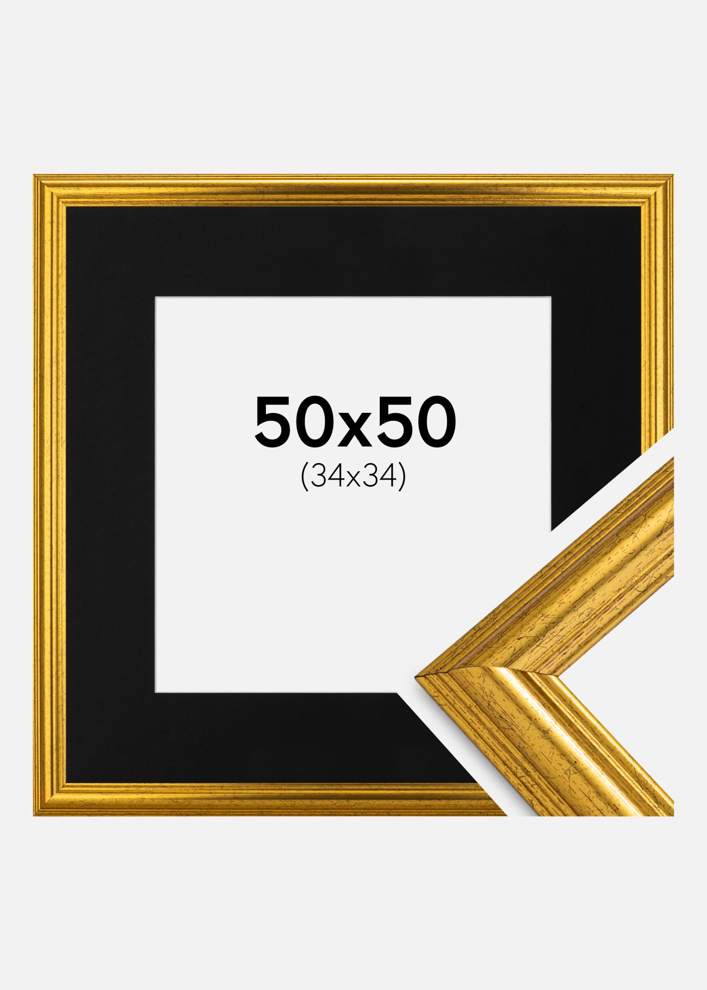 Ram Västkusten Guld 50x50 cm - Passepartout Svart 35x35 cm