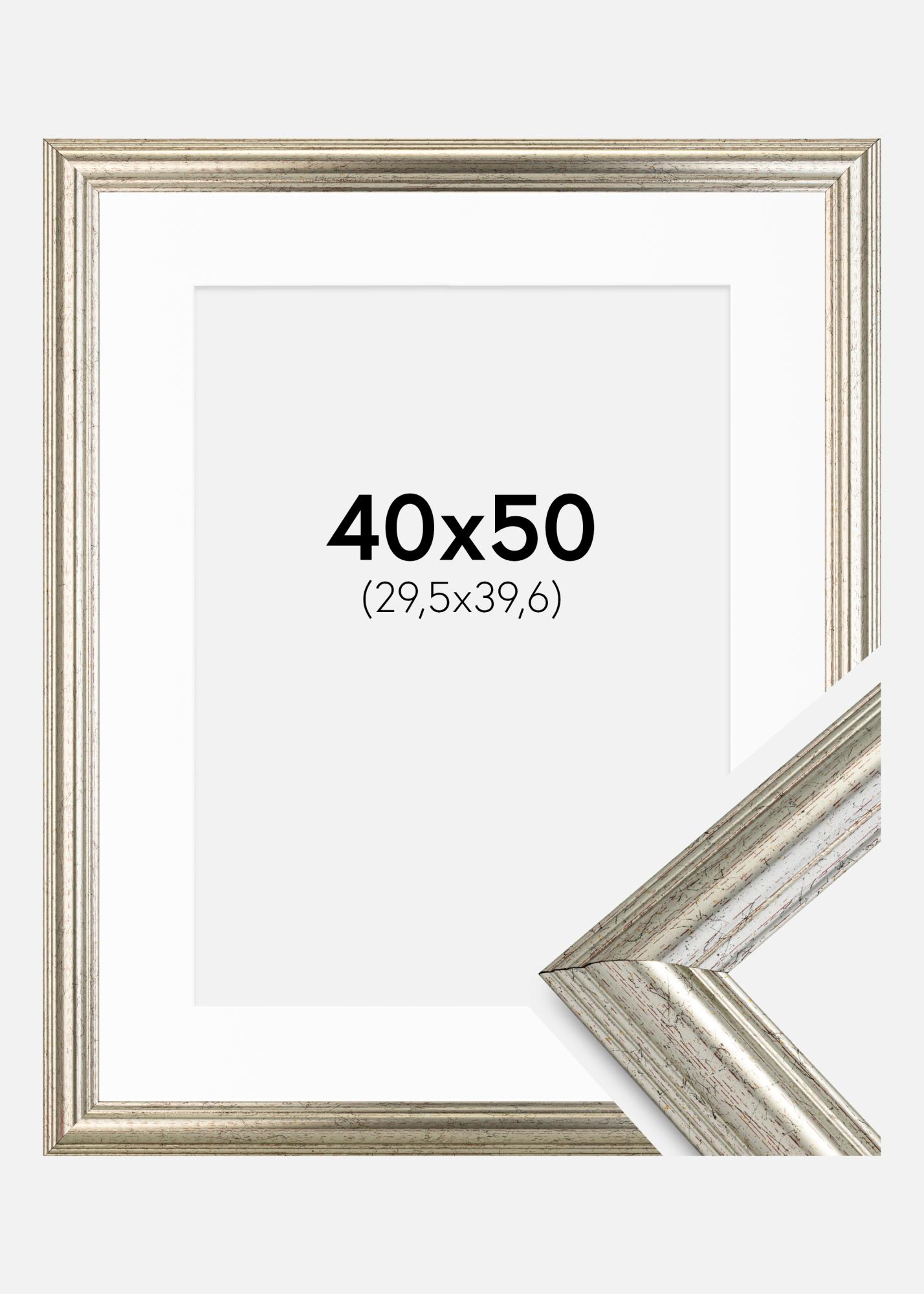 Ram Västkusten Silver 40x50 cm - Passepartout Vit 12x16 inches