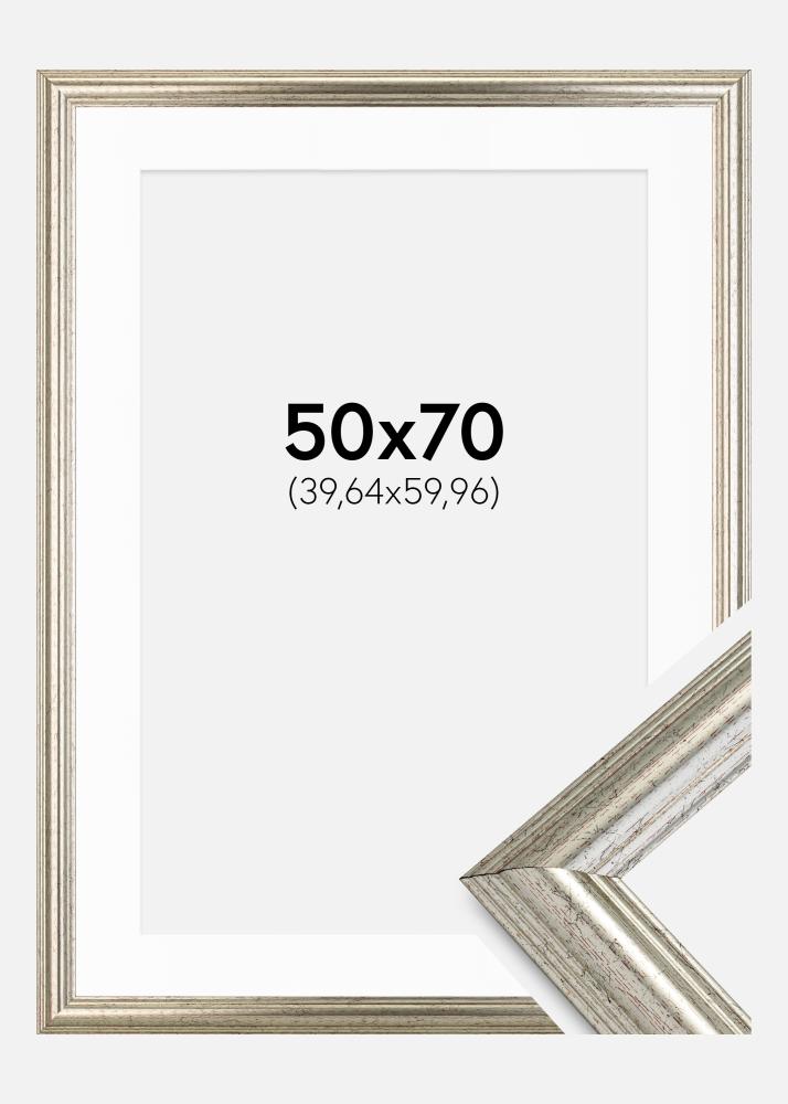 Ram Västkusten Silver 50x70 cm - Passepartout Vit 16x24 inches