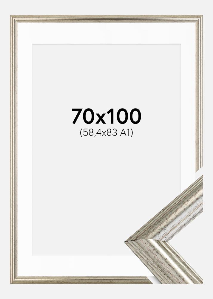 Ram Västkusten Silver 70x100 cm - Passepartout Vit 59,4x84 cm (A1)