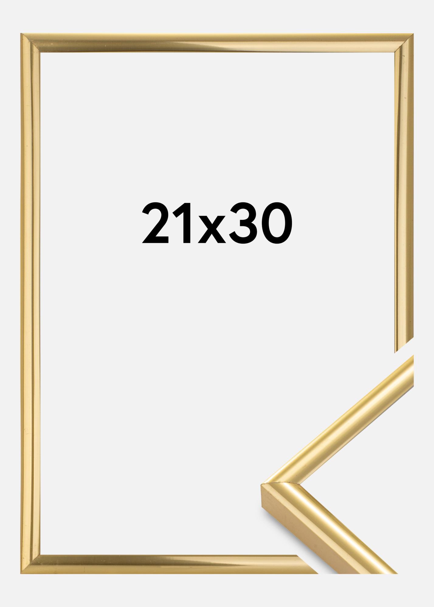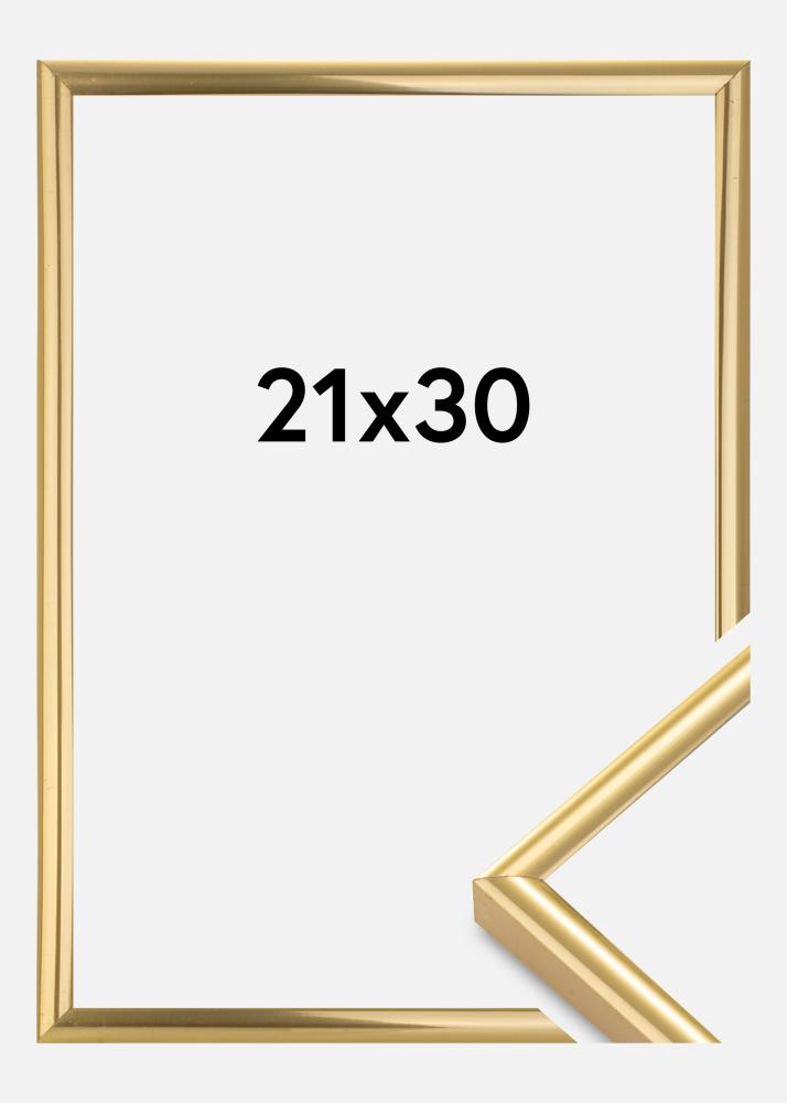 Detta är en tavelram vars tunna ramlist och blanka guldfärg sätter en modern prägel på dina tavlor. Den passar utmärkt när du vill rama in abstrakta prints eller trendig fotokonst – och väljer du att rama in mer klassiska motiv blir ramen en snygg kontrast.