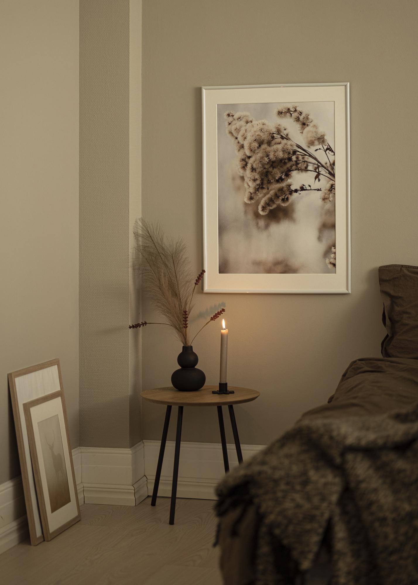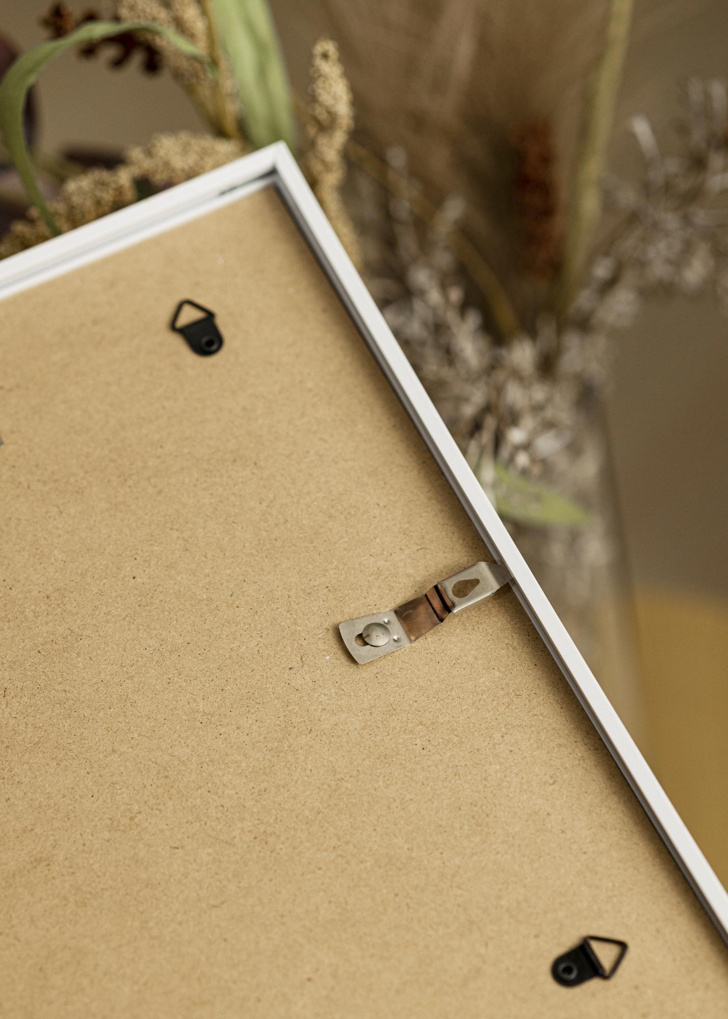 Med denna tavelram kan dina motiv få en modern inramning, tack vare ramens tunna ramlist med blank finish. Den vita färgen gör att den matchar bra med olika sorters motiv, exempelvis posters, teckningar eller foton på familjen. Med ett innerdjup på 15 mm har du gott om plats att komplettera denna ram med en passepartout och på så vis ge dina bilder en luftigare inramning med ännu mer fokus på motivet. För att montera in dina bilder vrider du på metallclipsen på ramens baksida, lossar bakstycket och placerar in motiven i ramen.