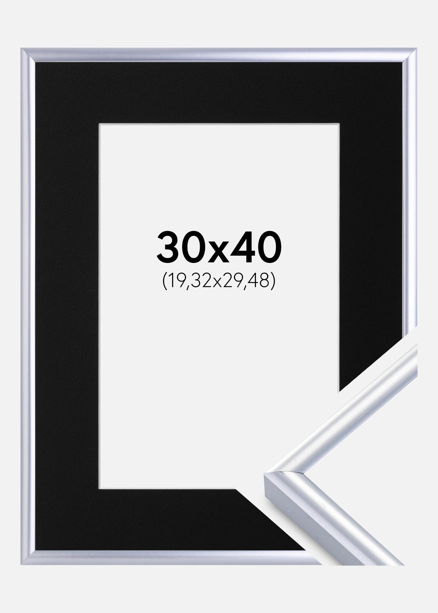 Ram Victoria Silver 30x40 cm - Passepartout Svart 8x12 inches