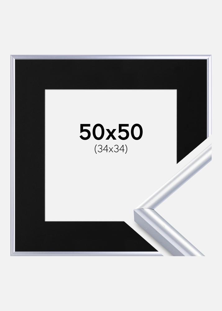 Ram Victoria Silver 50x50 cm - Passepartout Svart 35x35 cm