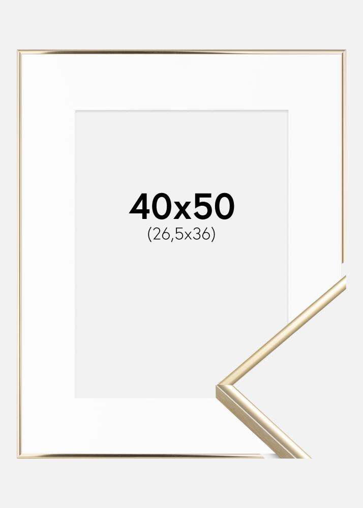 Upplev en touch av elegans och sofistikering med vår exklusiva guldram, perfekt för att framhäva dina mest älskade bilder eller konstverk. Med en bildstorlek på 27,5x37 cm och en vit passepartout, ger denna ram en professionell och polerad look till dina väggar.