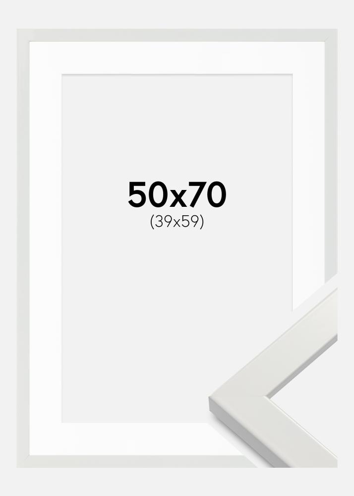 Ram White Wood Glossy 50x70 cm - Passepartout Vit 40x60 cm