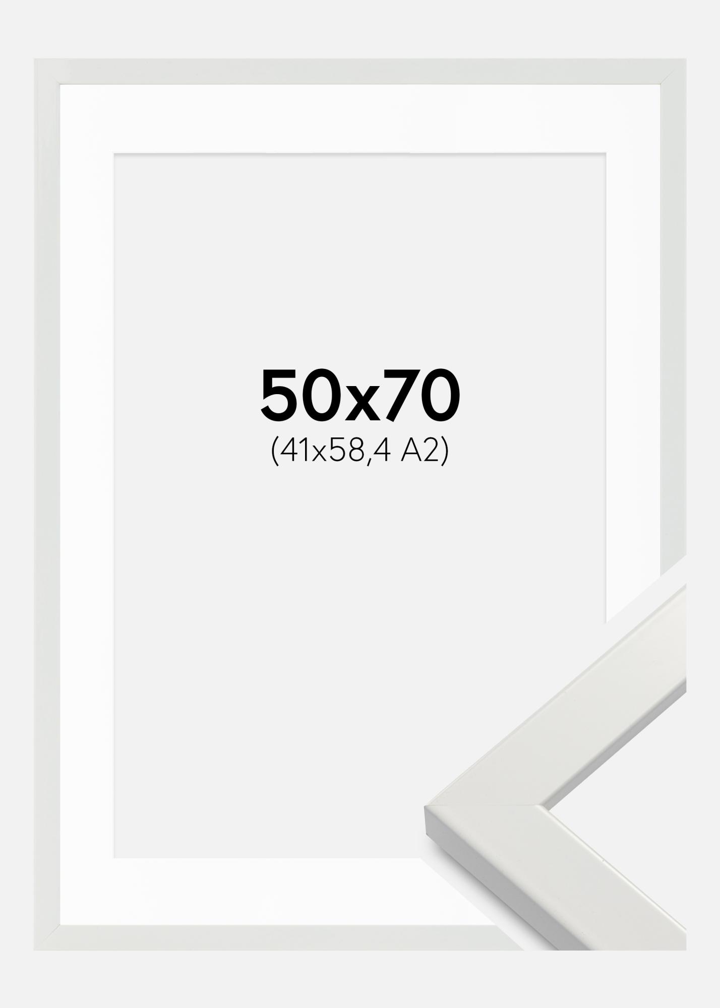 Ram White Wood Glossy 50x70 cm - Passepartout Vit 42x59,4 cm (A2)