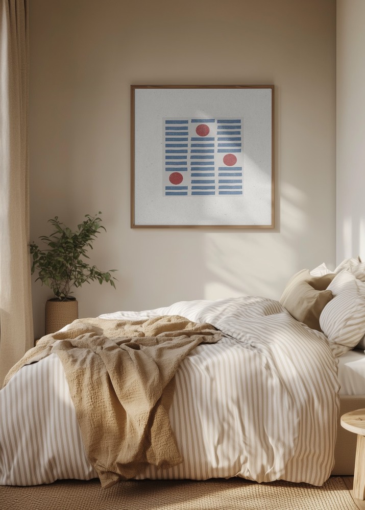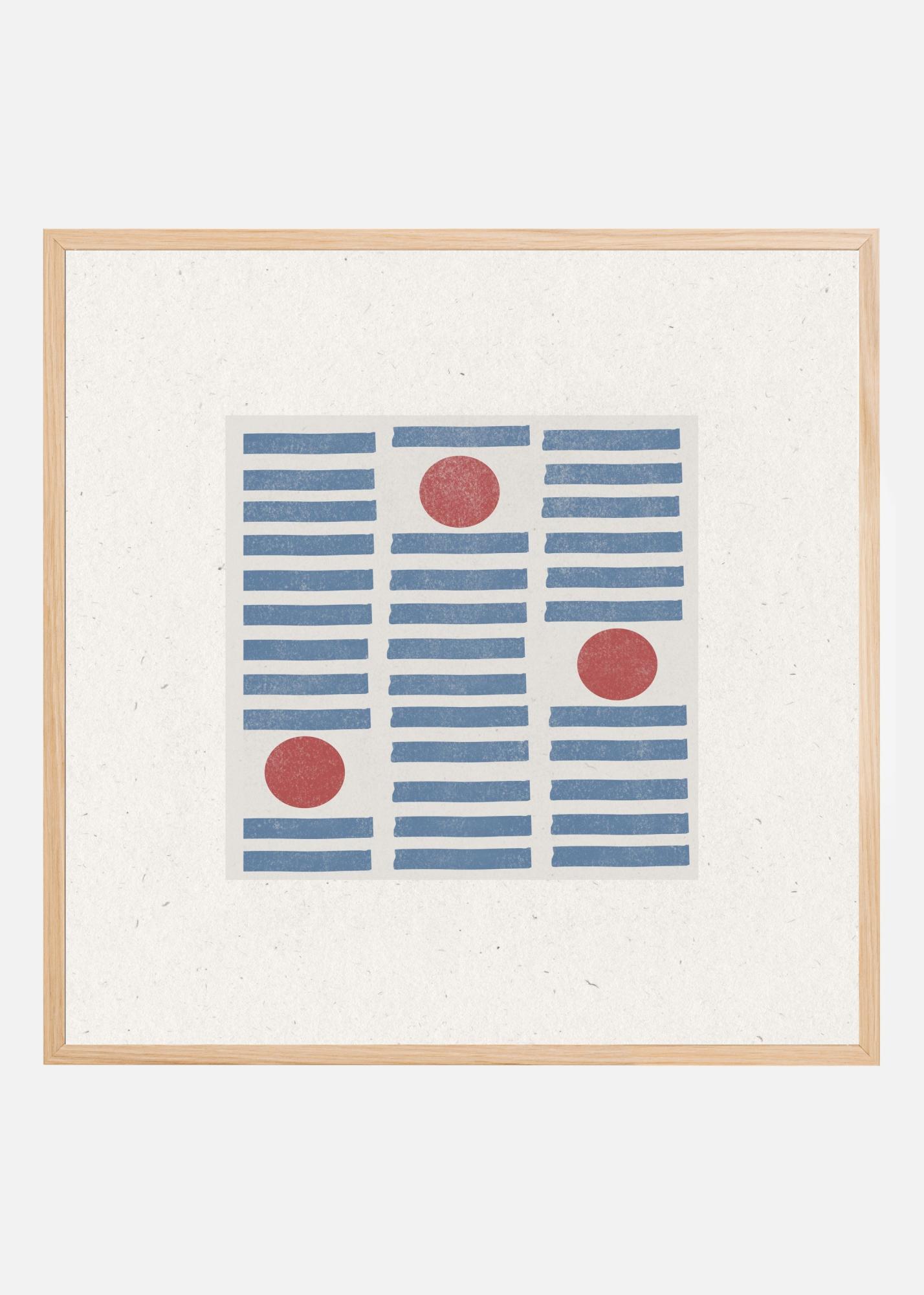 Denna print passar perfekt i både modernt och traditionellt inredda rum, tack vare den subtila färgpaletten och det okomplicerade mönstret. Med sin harmoniska kombination av blå och röd nyans blir denna affisch en stilfull detalj som lyfter vilket rum som helst. Inspirera din inredning med detta unika konstverk!