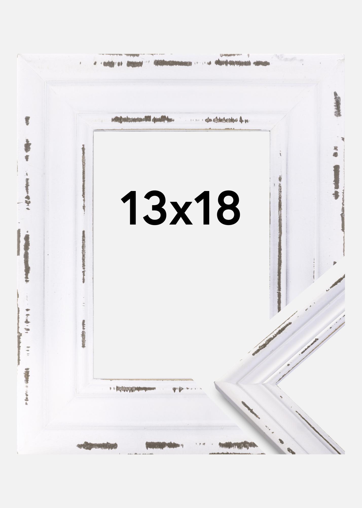 Har man inte turen att ärva gamla inramade släktfotografier får man skapa dessa tavlor på egen hand. Här har vi en dekorativt sliten ram som passar perfekt för ändamålet! Ramen är vit med en klassiskt profilerad list och avskavda partier där trät syns igenom. Välj mellan en rad olika storlekar!