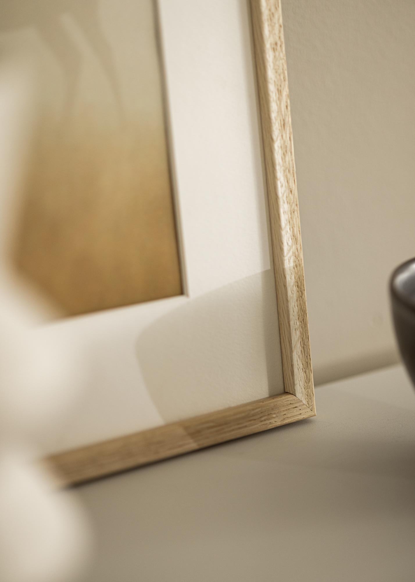 Eftersom denna ram är tillverkad i äkta solid ek förekommer det naturliga färgskiftningar i träet, vilket också gör att det kan förekomma färgskillnader mellan tavellisterna.