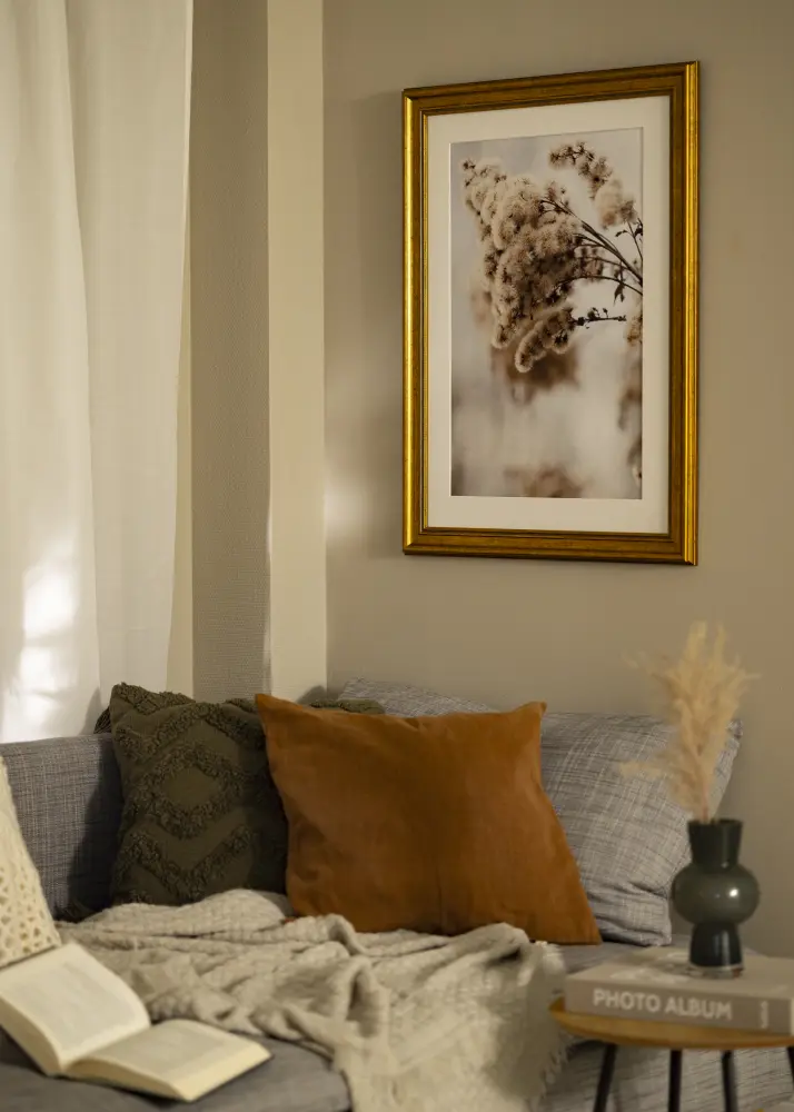 Ge dina bilder en kunglig inramning med denna ståtliga 21x29,7 cm (A4) fotoram. Dess profilerade breda guldram i rokokostil tillför en lyxig och klassisk touch till din inredning. Med en ramlist som mäter hela 50 mm i bredd, blir ditt konstverk eller foto garanterat rummets mittpunkt.