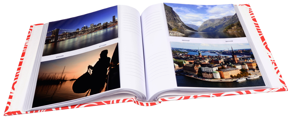 Fotoalbum med en lekfull blommig design i rött och vitt. Albumet är bokbundet och har laminerade pärmar vilket ger en hög kvalitet och lång hållbarhet. Genom att albumet har fotofickor går det enkelt att sätta in bilder. Totalt finns det plats för 200 bilder i storlekar upp till 11x15 cm. De syrafria albumbladen är vita och har skrivfält vid varje bild.