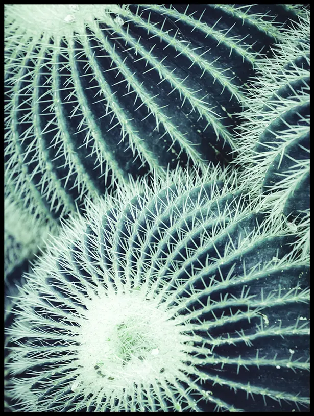 Grönblå-skimrande poster med vackert foto av vackra kaktusar. En härlig affisch tryckt på 180 grams bestruket papper. Matcha gärna med en snygg ram och inred med stil. Finns i flera storlekar.