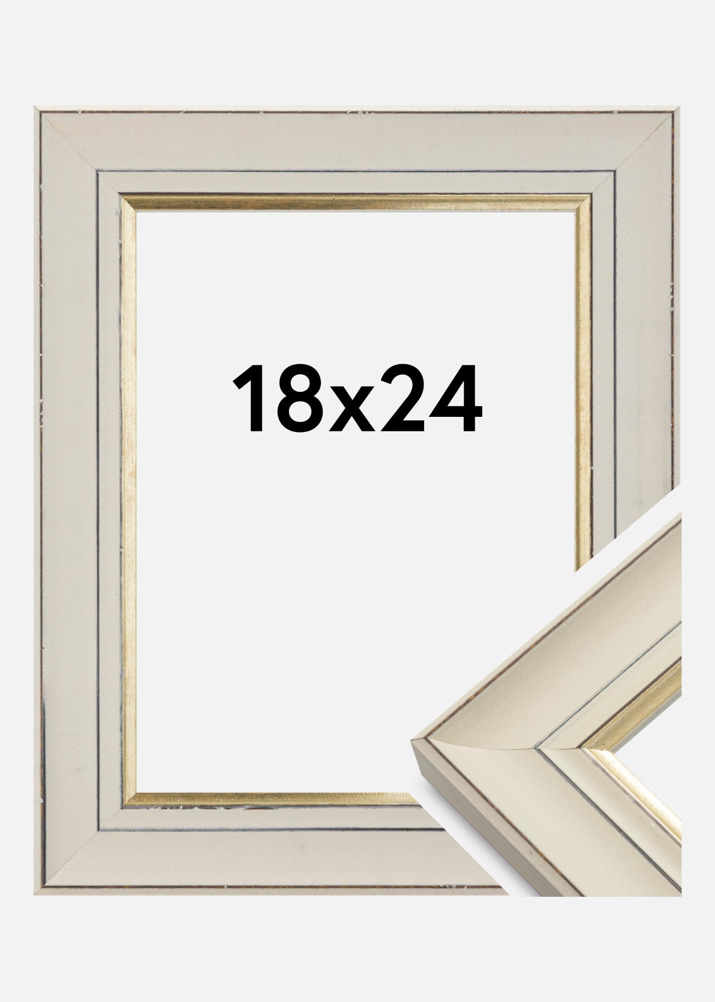 Fotoram i klassisk stil med en spännande retrokänsla. Ramen har en nött profil i vitt med en snygg guldkant närmast motivet, med sin neutrala design och färgval är detta en ram som passar i nästan alla miljöer och till alla typer av motiv.