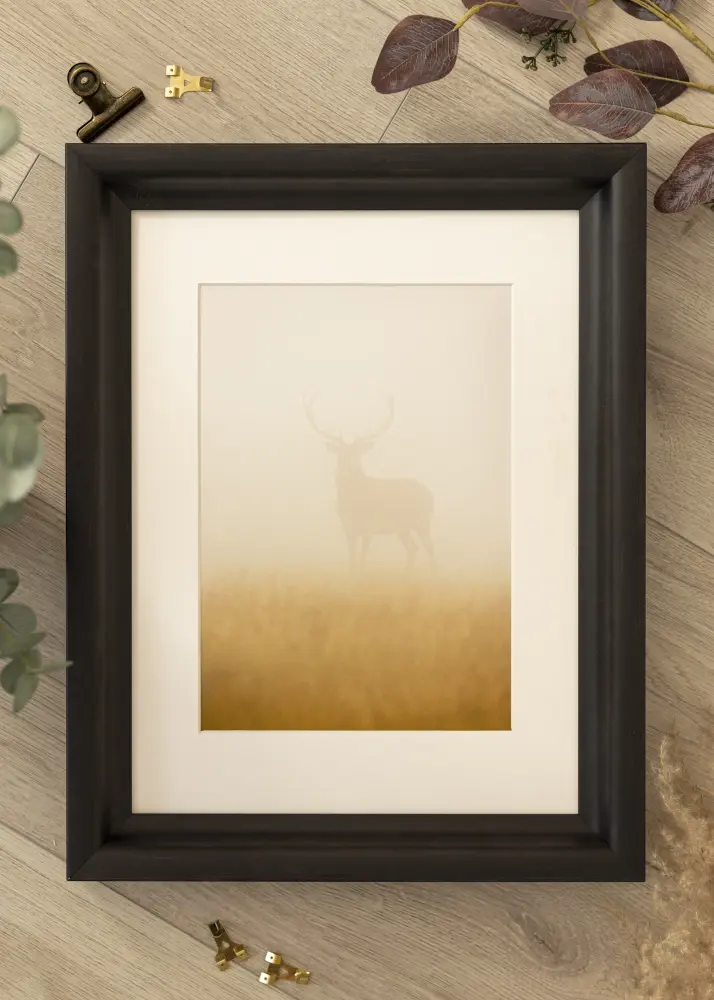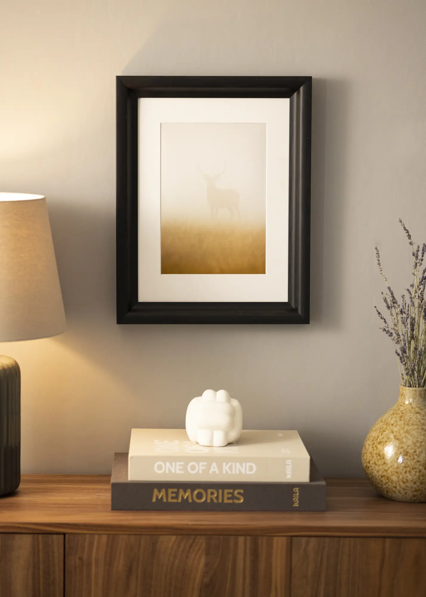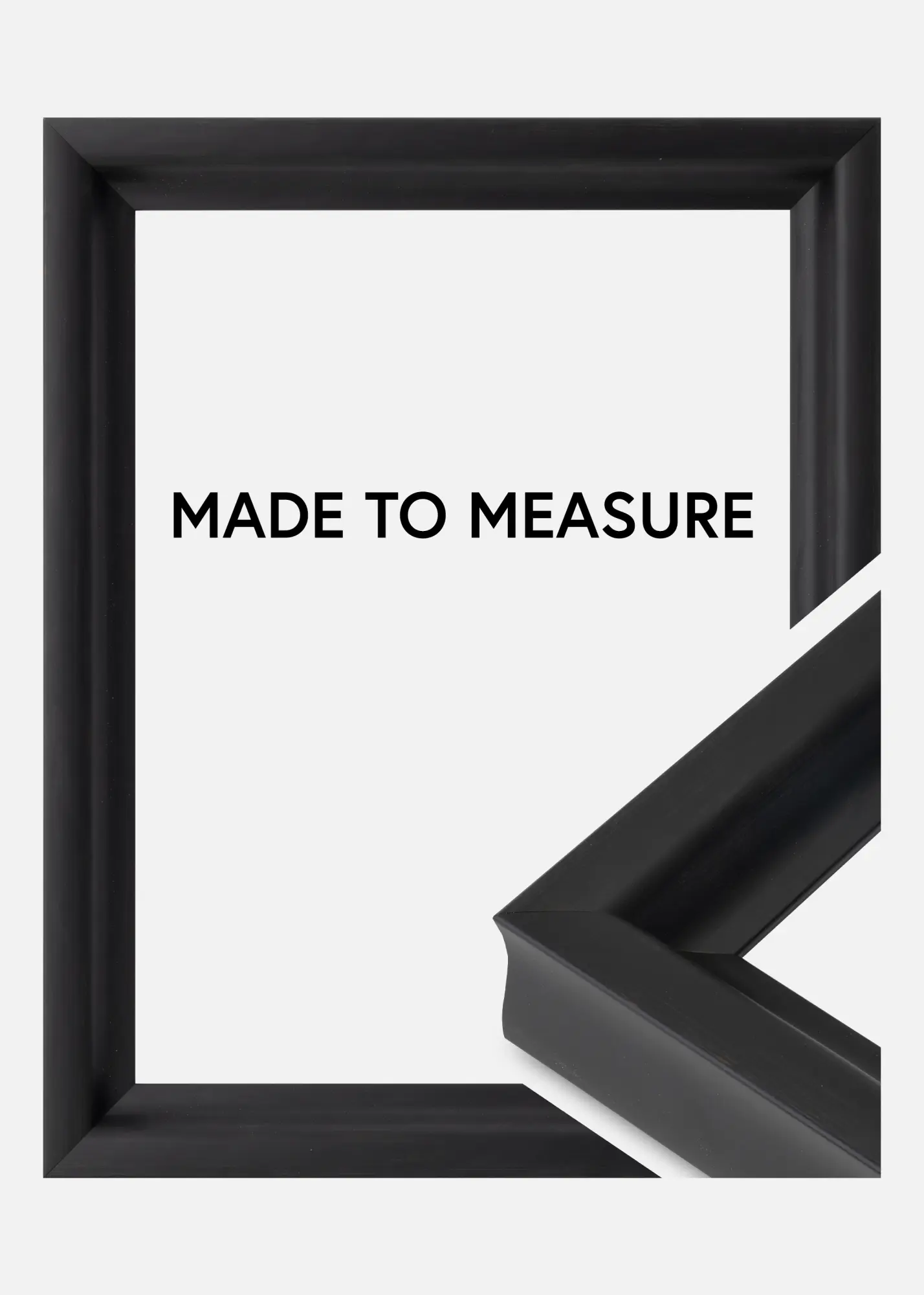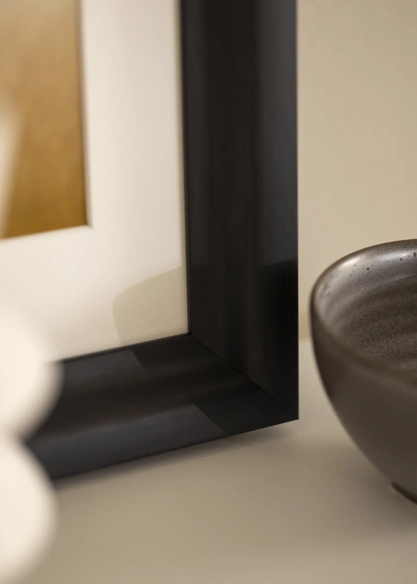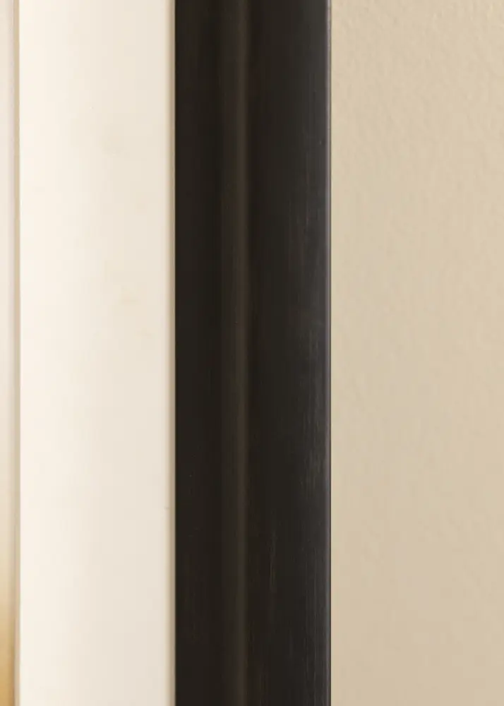 Traditionell tavelram i en mörk svartbrun färg som ligger närmare svart än brun. Ett utmärkt val när du söker en måttbeställd ram i en mörk nyans där träets struktur skymtar.