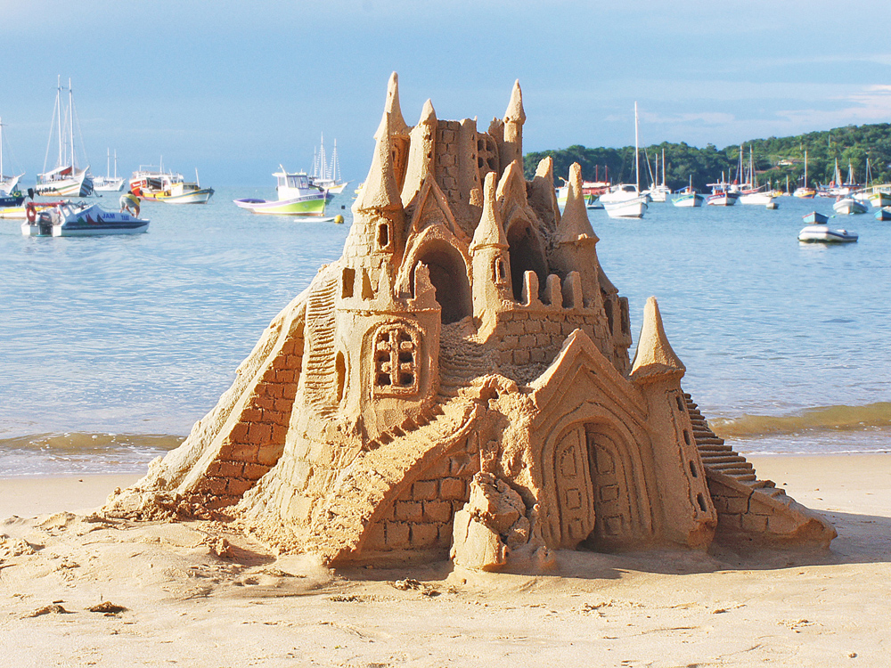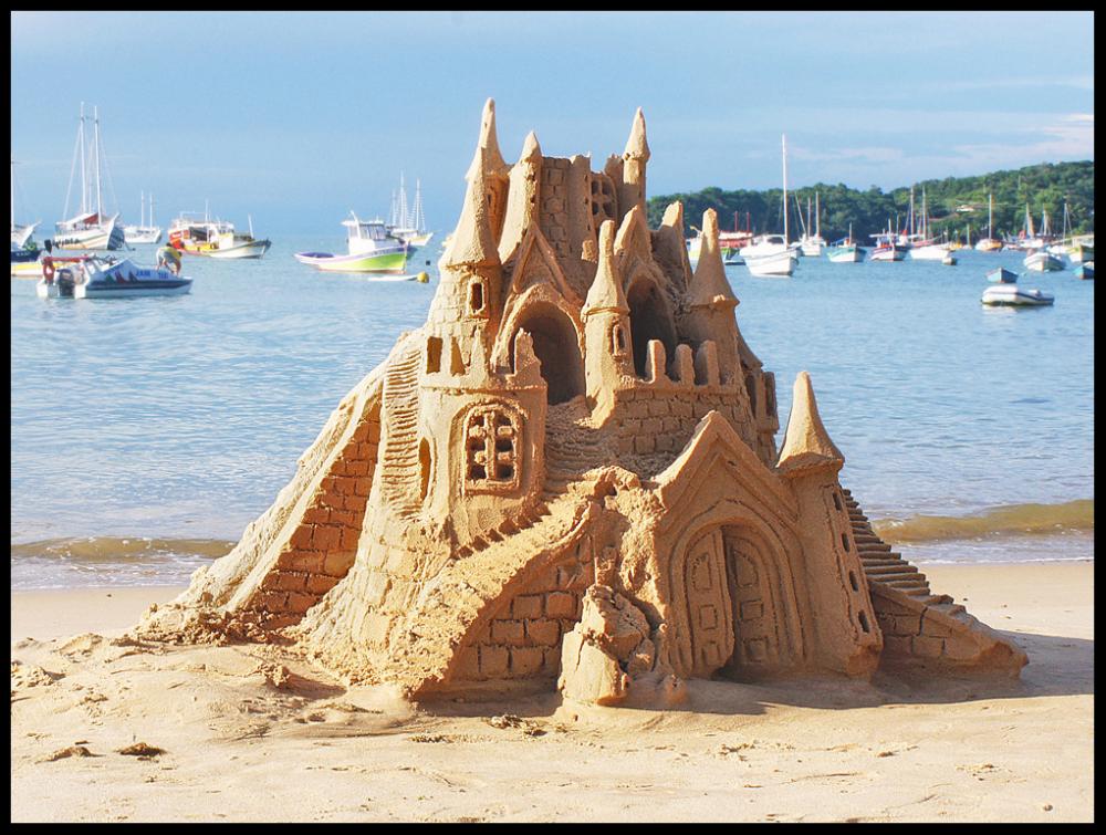 Ordet sandslott får en helt annan innebörd av det här fotografiet, en härlig sommarbild med guppande fiskebåtar i bakgrunden. Postern passar fint i sommarhuset eller i hemmet där man vill skapa en lite somrig känsla. Rama in affischen med en fin bildram och kombinera med andra tavlor med strand- eller marinmotiv.