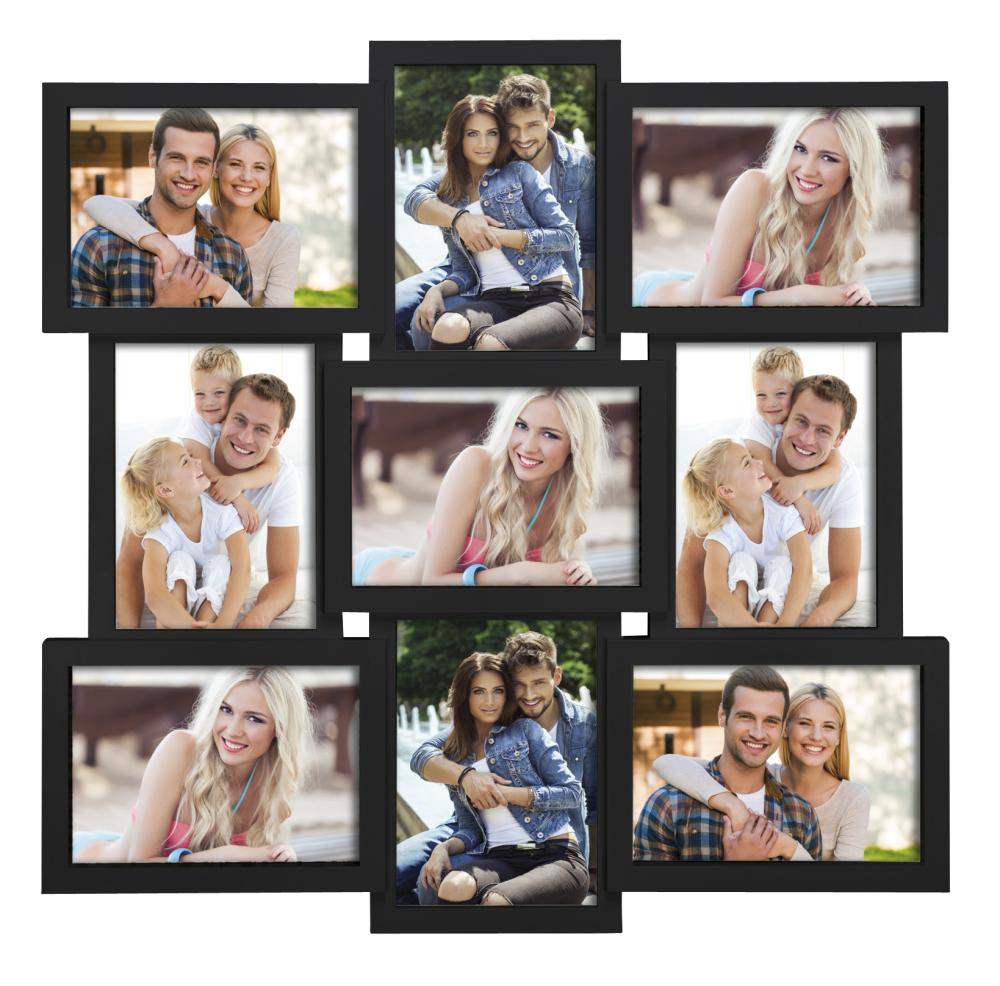 Har du en vägg där hemma som känns lite tom och sorgsen? Liva upp den med en snygg kollageram fullproppad med personliga bilder! Den här stilfulla varianten rymmer 4 stycken stående och 5 stycken liggande bilder med måtten 13x18 cm.