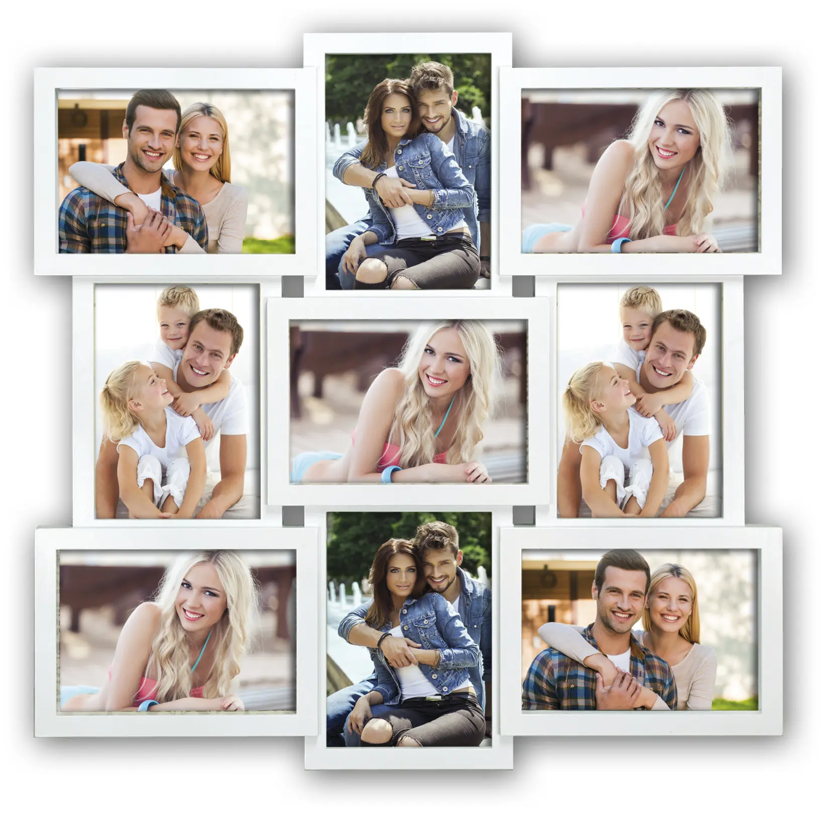 Har du en vägg där hemma som känns lite tom och sorgsen? Liva upp den med en snygg kollageram fullproppad med personliga bilder! Den här stilfulla varianten rymmer 4 stycken stående och 5 stycken liggande bilder med måtten 13x18 cm.