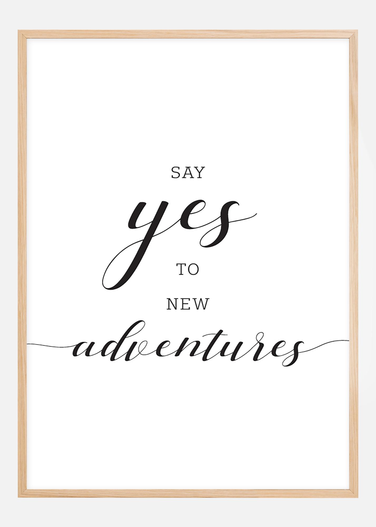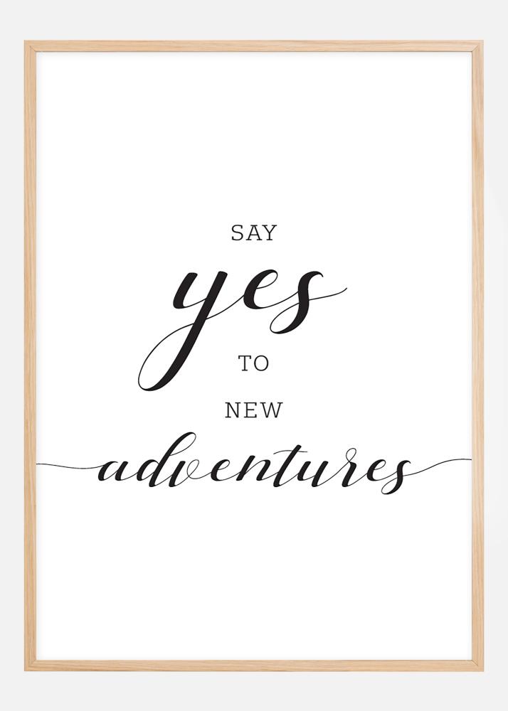 En kalligrafisk poster med ett roligt resecitat i skrivstil och maskinskrift. Gör dig redo att säga ja till nya äventyr när du hänger upp det här enkla svartvita citatet hemma. Bli inspirerad varje dag när du tittar på den här frasen.