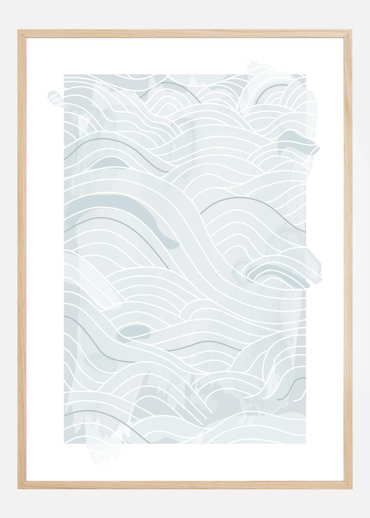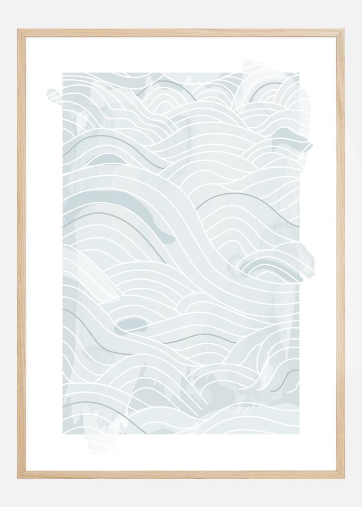 En havsposter med mjuka blå abstrakta linjer och vågor mot en vit bakgrund. Olika toner av blått och olika linjetjocklekar kombineras för att skapa dessa böljande vågor över sidan. Låt tankarna vandra och låt dig svepas med i det här mjuka havsmönstret.