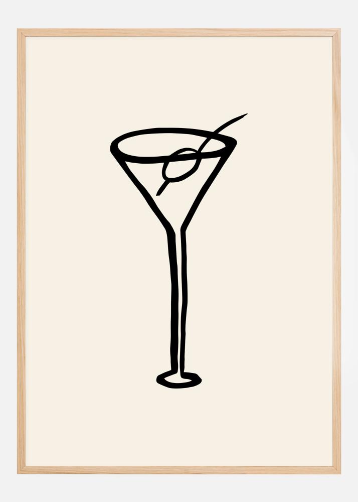 En enkel poster med ett cocktailglas med en oliv i. Få den där James Bond-vibben när du hänger upp den här enkla svarta linjeteckningen av ett martiniglas på din vägg. Kombinera med en djärv väggfärg för att den här starka teckningen ska komma till sin rätt. Blir du skakad eller rörd av den?