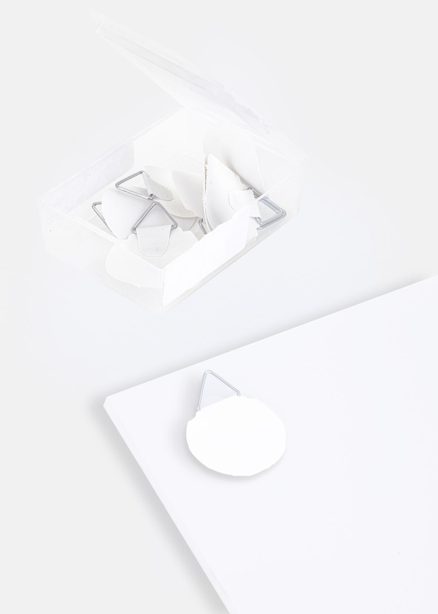 En hängare som passar bra när du ska få upp lättare saker på väggen som tex: broderier, kakelplattor och foamboard. Passar ej till ramar då dessa blir för tung. Fukta först hänget och fäst det därefter på baksidan av det du vill hänga upp. Lägg en tyngd på hänget och låt det torka i 24 timmar. Passar utmärkt till fotoutställningar där bara bild och passepartout används på väggen.