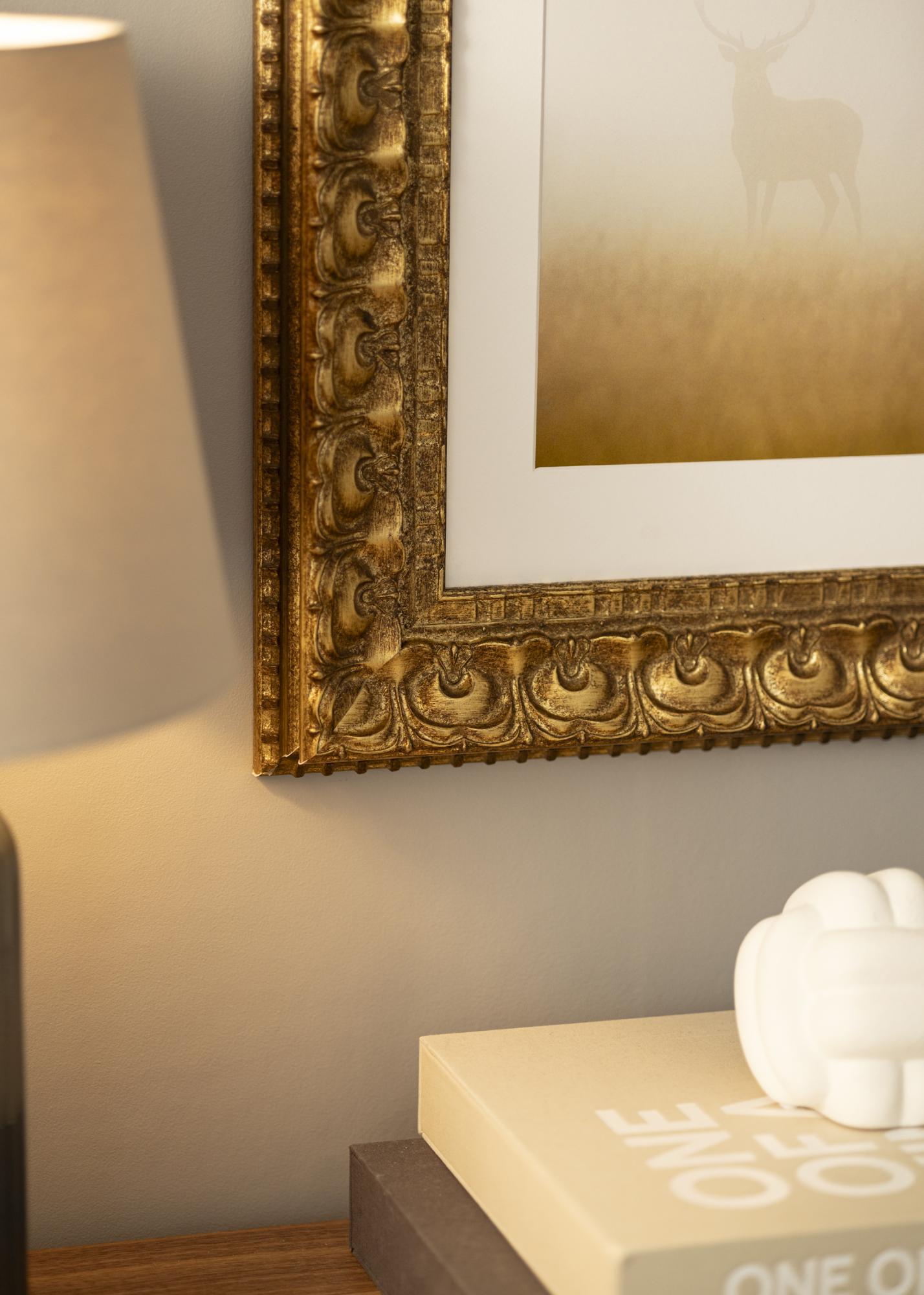 Förvandla dina bilder till konstverk med vår exklusiva tavelram Skokloster Guld. Denna fotoram är designad för att ge dina minnen en elegant inramning med sin klassiska guldfinish och rikt utsmyckade profil. Den antika looken förstärks av en patinerad yta, vilket ger ramen en tidlös och sofistikerad känsla som passar perfekt i både moderna och traditionella miljöer.