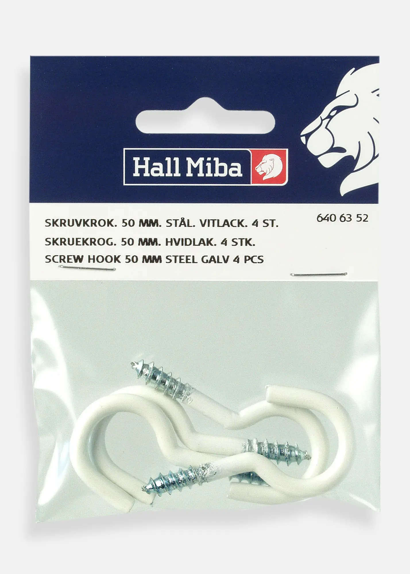 Skruvkrok 50 mm Stål Vitlack är en stark och diskret krok med vitlackad yta som ger en stilren finish. Perfekt för att hänga upp ramar, lampor eller andra föremål. Levereras i ett 4-pack.