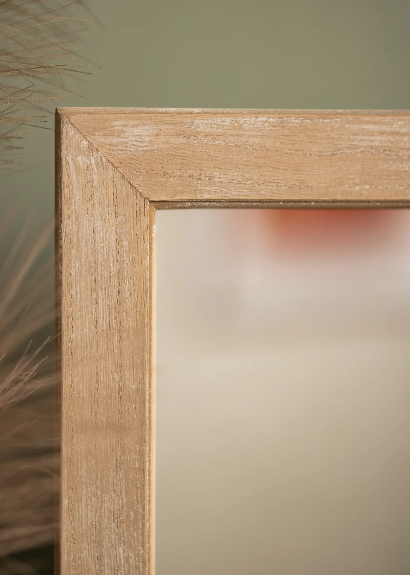 Denna charmiga sminkspegel är en elegant och funktionell tillägg till ditt hem. Med sina mått på 46x47x12 cm, erbjuder den en generös yta för att underlätta dina dagliga skönhetsrutiner. Den ljust träfärgade ramen ger en naturlig och varm känsla, vilket gör att spegeln enkelt smälter in i olika inredningsstilar.