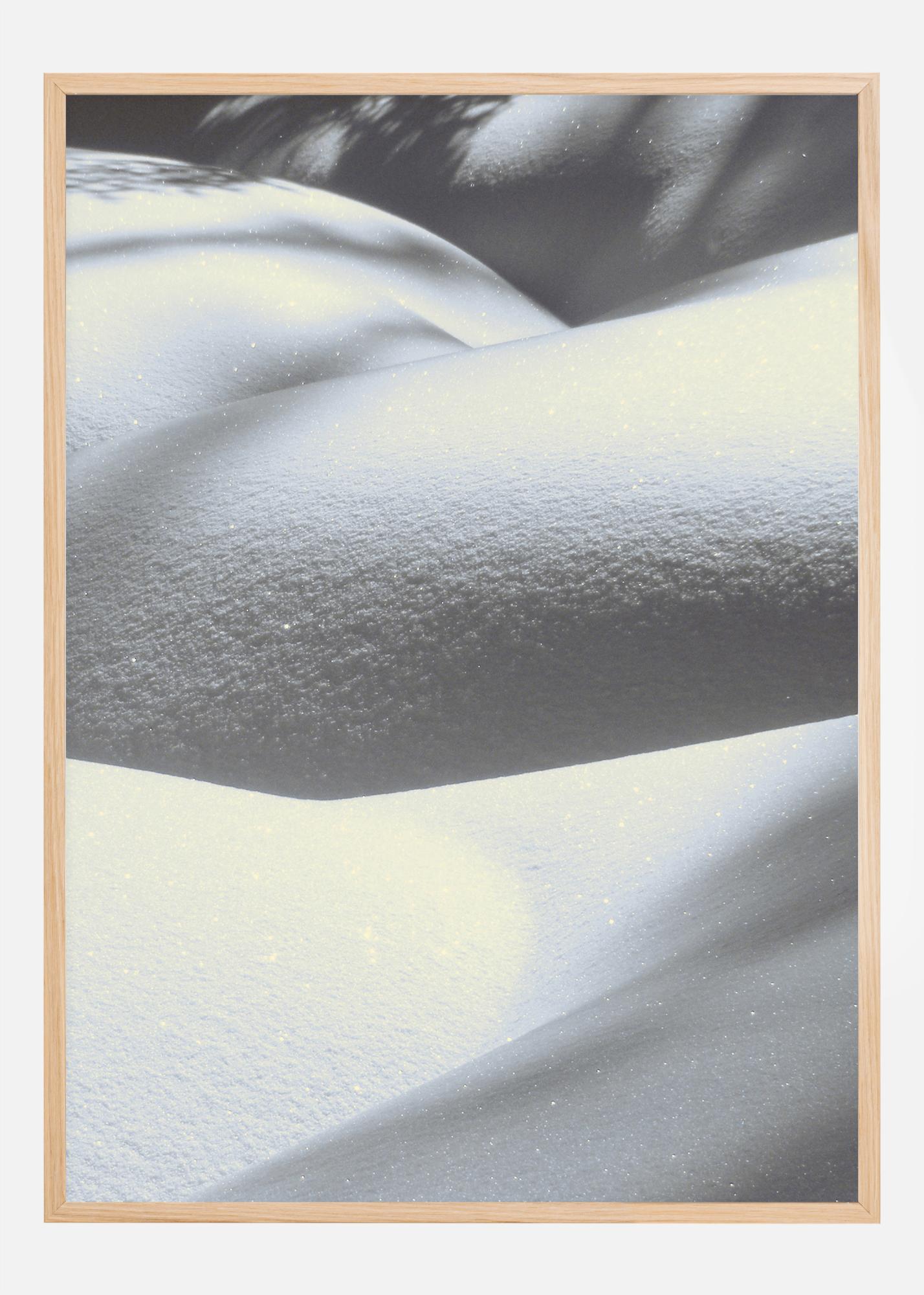 En vit poster med snö på böljande kullar. Den här bilden är en blandning av vitt och grått när snön rullar över landskapet och skapar olika mönster och former. Snö döljer allt och lämnar allt till din fantasi, precis som den här bilden.