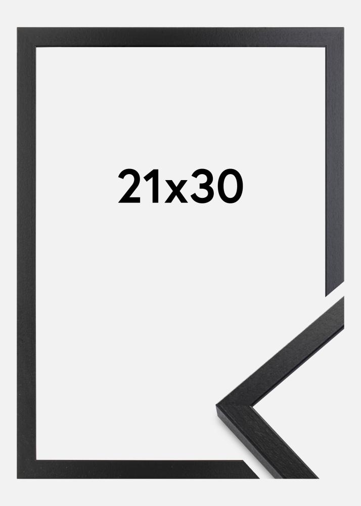 Soul Svart är en modern träram, vars breda list på 13,5 mm skapar en stor kontrast mellan bild och vägg. Det är perfekt för dig som är på jakt efter en ram som sätter ditt motiv i fokus och drar blicken till tavlan som helhet. Den breda, kantiga profilen skapar ett mycket stilrent uttryck, som förstärks av den målade svarta färgen. Ramens bakstycke är tillverkat av brun MDF och försett med vägghängen som låter dig hänga upp ramen både horisontellt och vertikalt. Du kan enkelt montera in din bild genom att böja upp metallstiften som håller bakstycket på plats.