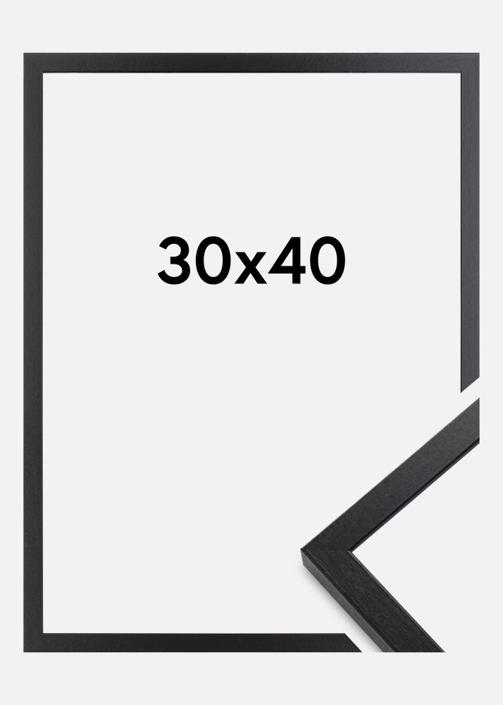 Soul Svart är en modern träram, vars breda list på 13,5 mm skapar en stor kontrast mellan bild och vägg. Det är perfekt för dig som är på jakt efter en ram som sätter ditt motiv i fokus och drar blicken till tavlan som helhet. Den breda, kantiga profilen skapar ett mycket stilrent uttryck, som förstärks av den målade svarta färgen. Ramens bakstycke är tillverkat av brun MDF och försett med vägghängen som låter dig hänga upp ramen både horisontellt och vertikalt. Du kan enkelt montera in din bild genom att böja upp metallstiften som håller bakstycket på plats.