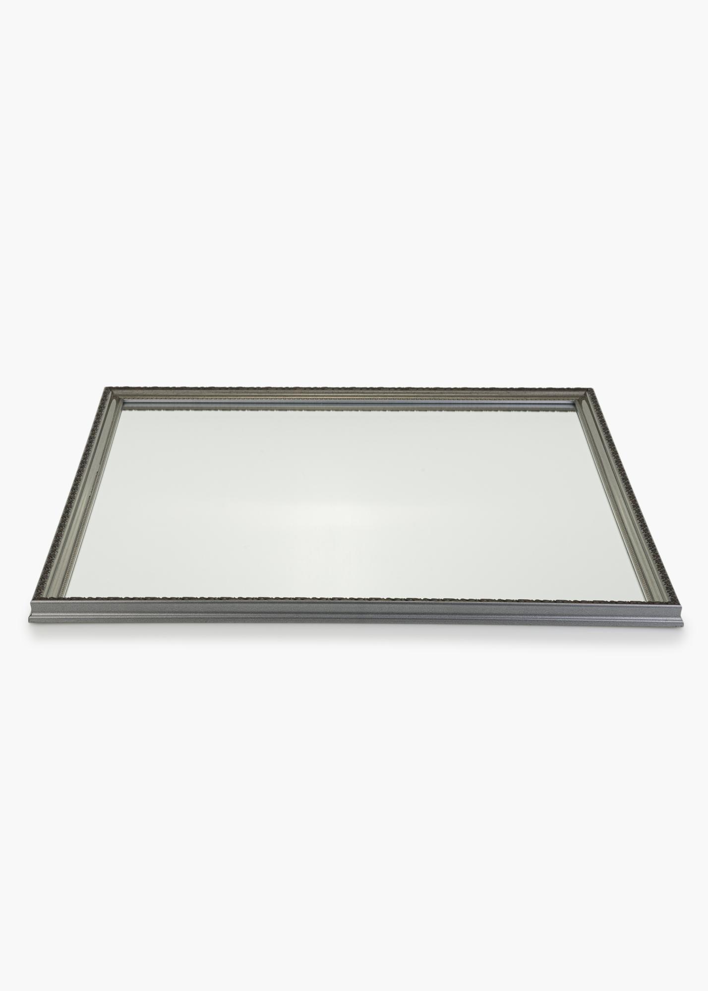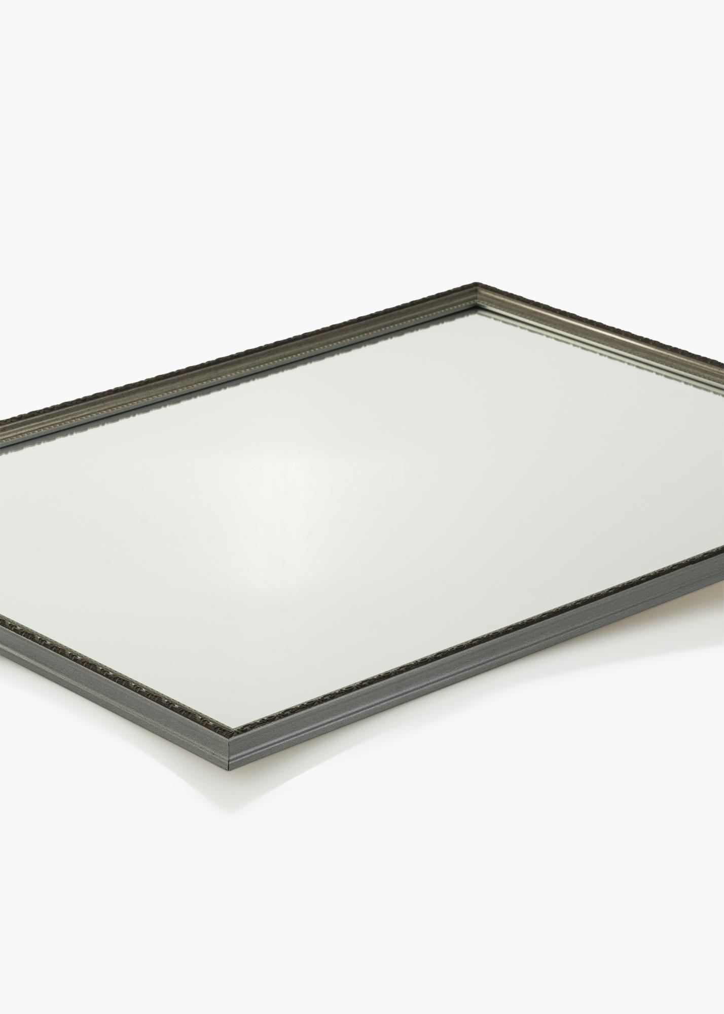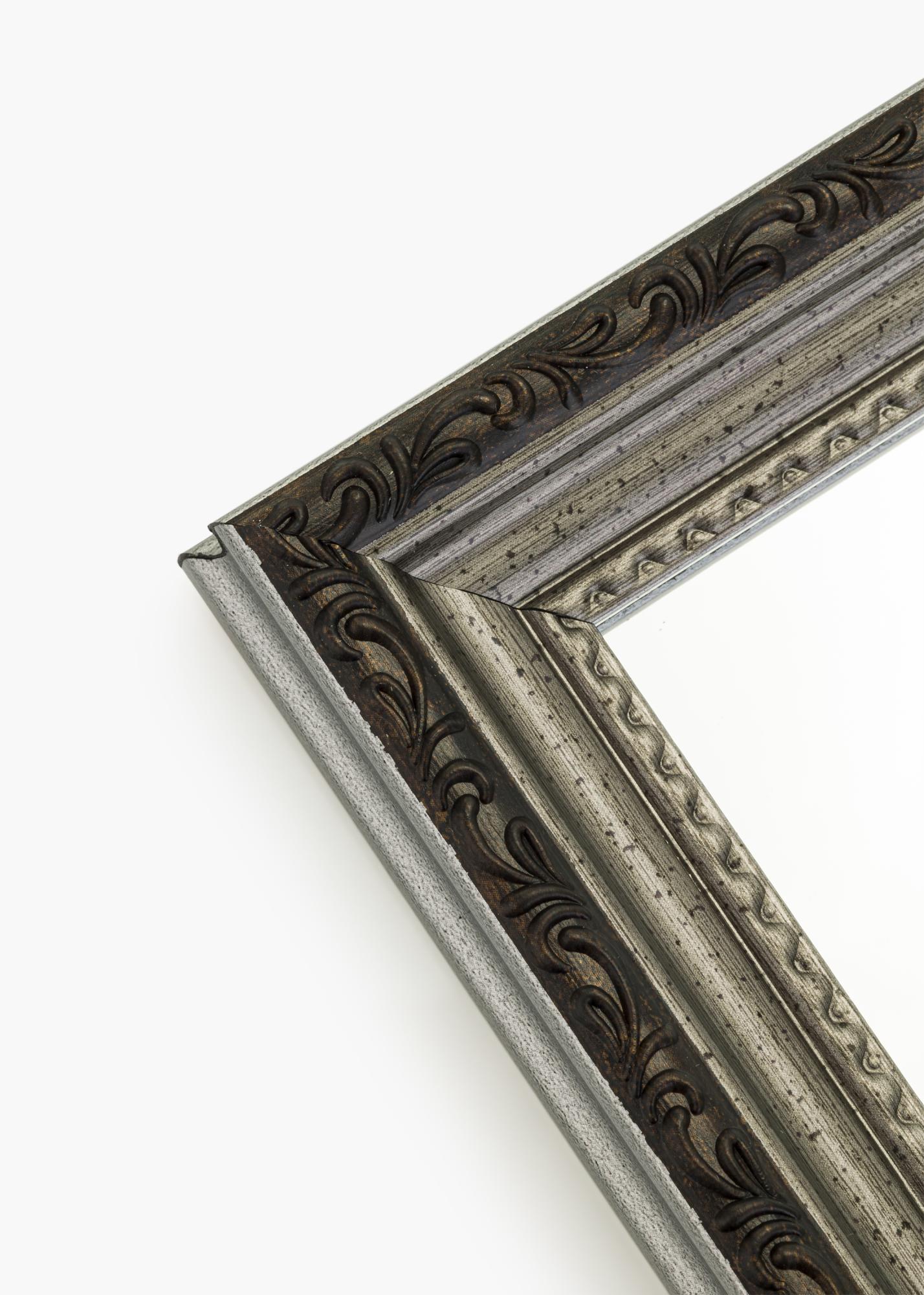 Detta är en väggspegel i stilren silvernyans som accentueras av en svart kant. Spegelns eleganta färgnyans kombineras perfekt av den ornamenterade profilen, vars mönster hjälper till att skapa en mycket sofistikerad helhet. Ramen är 25 mm bred och tillverkad i komposit.