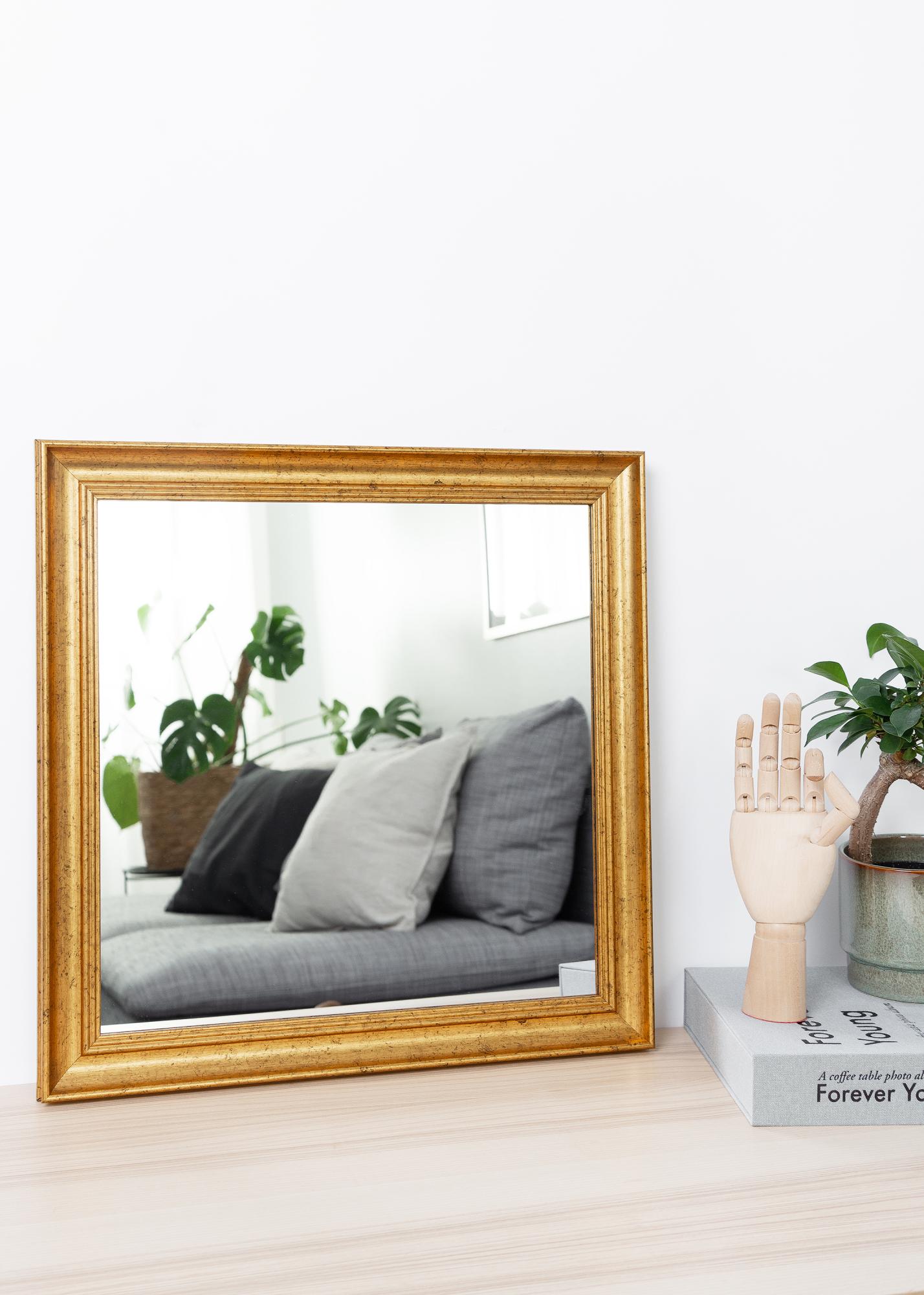 Starta ramväljaren »Alice Guld är en spegel vars ram har en klassisk stram utformning med raka linjer som byggts upp för att lägga fokus på motivet.