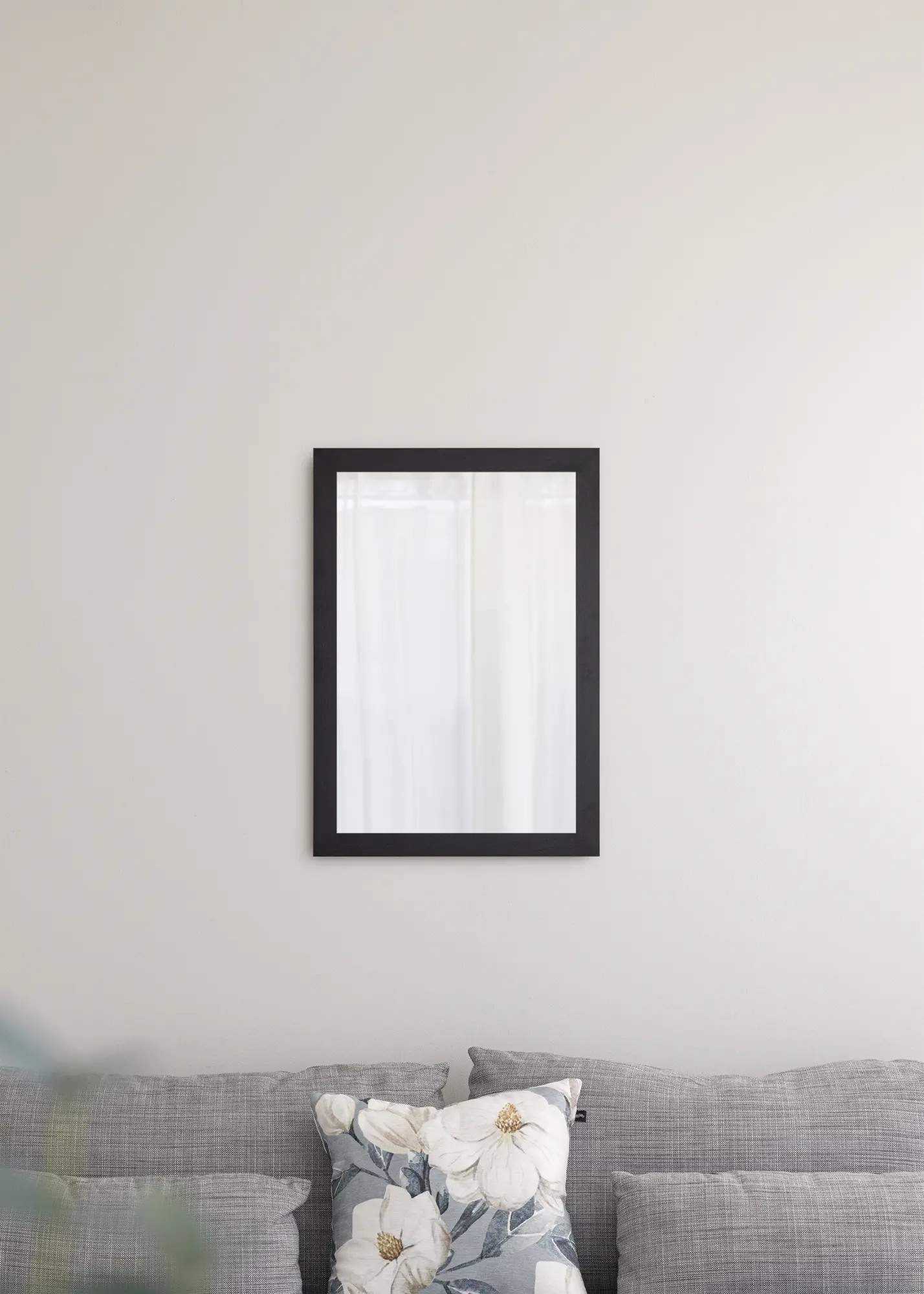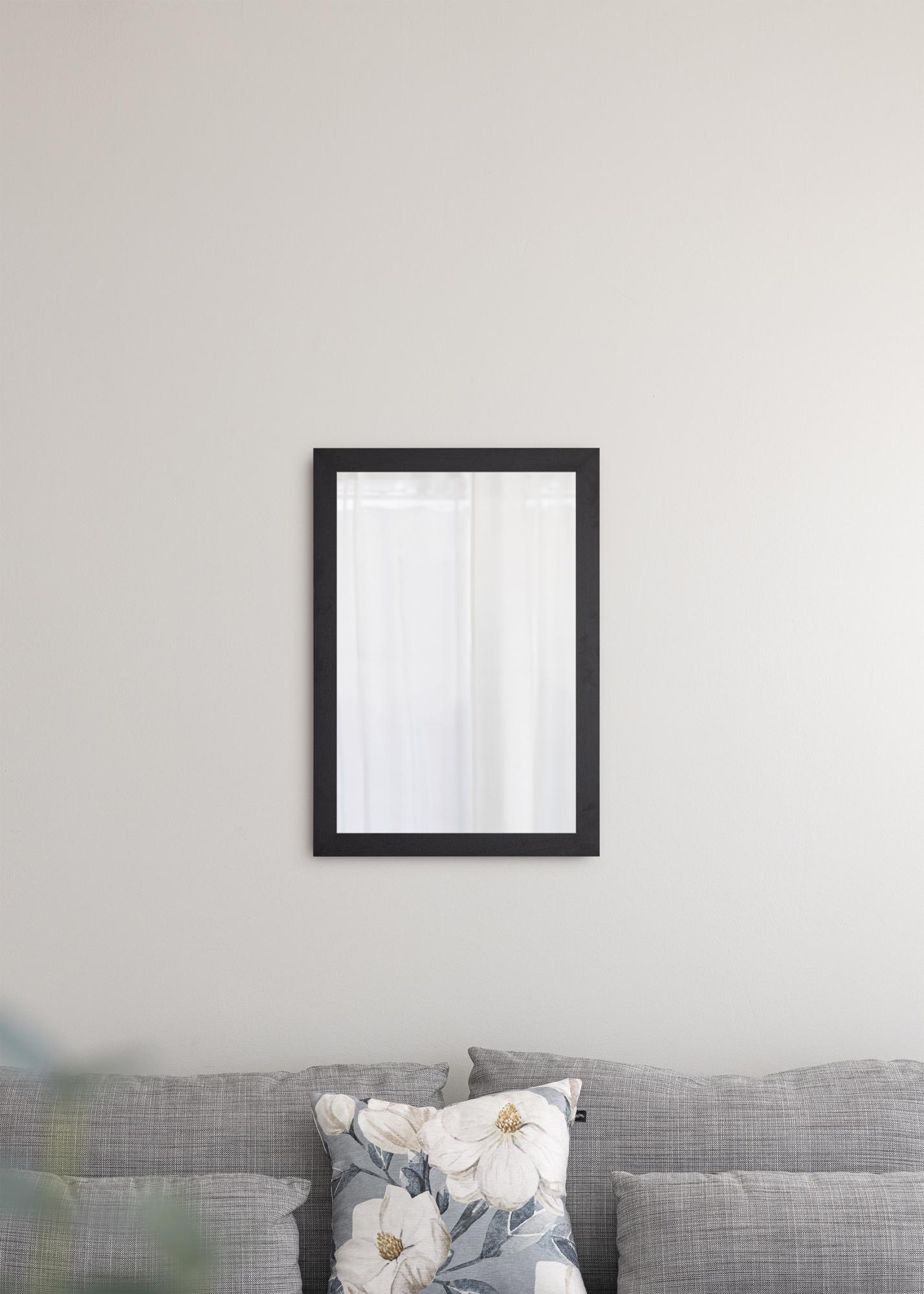Denna väggspegel är en stilren, minimalistisk inredningsdetalj som passar utmärkt i både moderna och traditionellt inredda hem. Spegeln har en 39 mm bred svartmålad träram, vilket ger ett modernt intryck. Genom att hänga upp en spegel kan du få rummet du placerar den i att se större ut, samtidigt som den ser snygg ut på väggen. Denna spegel ingår i en serie väggspeglar i olika storlekar, varav denna är 47x67 cm stor.
